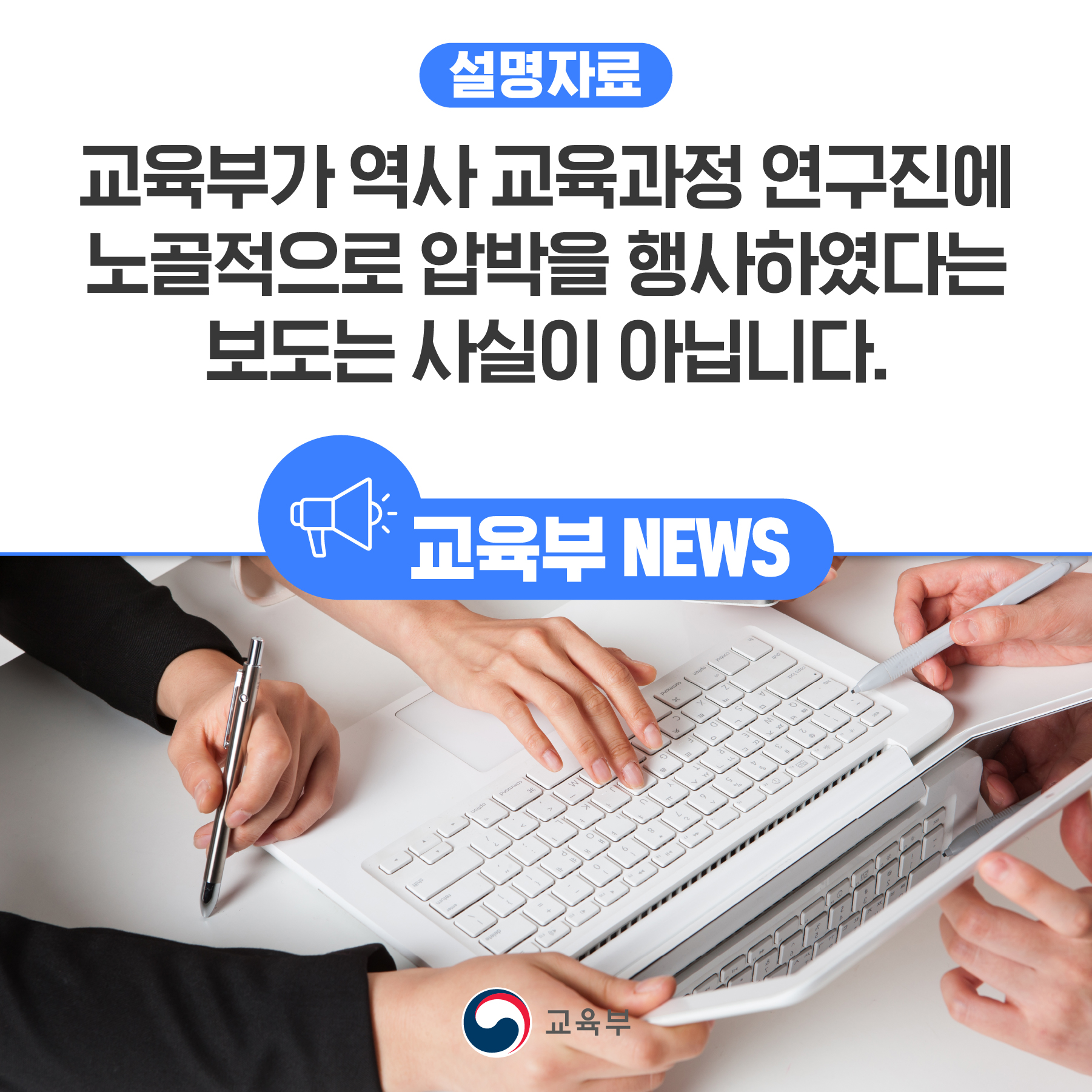 교육부가 역사 교육과정 연구진에 노골적으로 압박을 행사하였다는 보도는 사실이 아닙니다. 본문