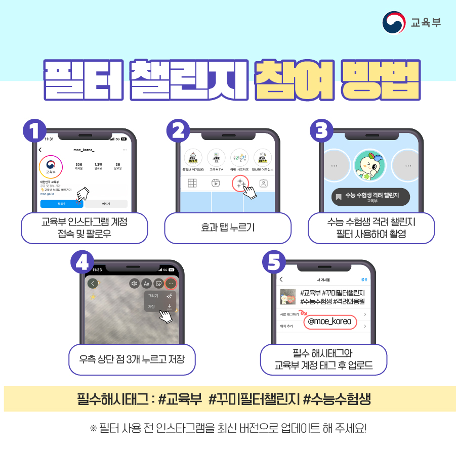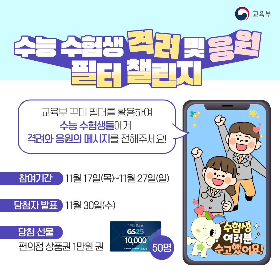 교육부 꾸미 필터를 활용하여 수능 수험생들에게 격려와 응원의 메시지를 전해주세요!