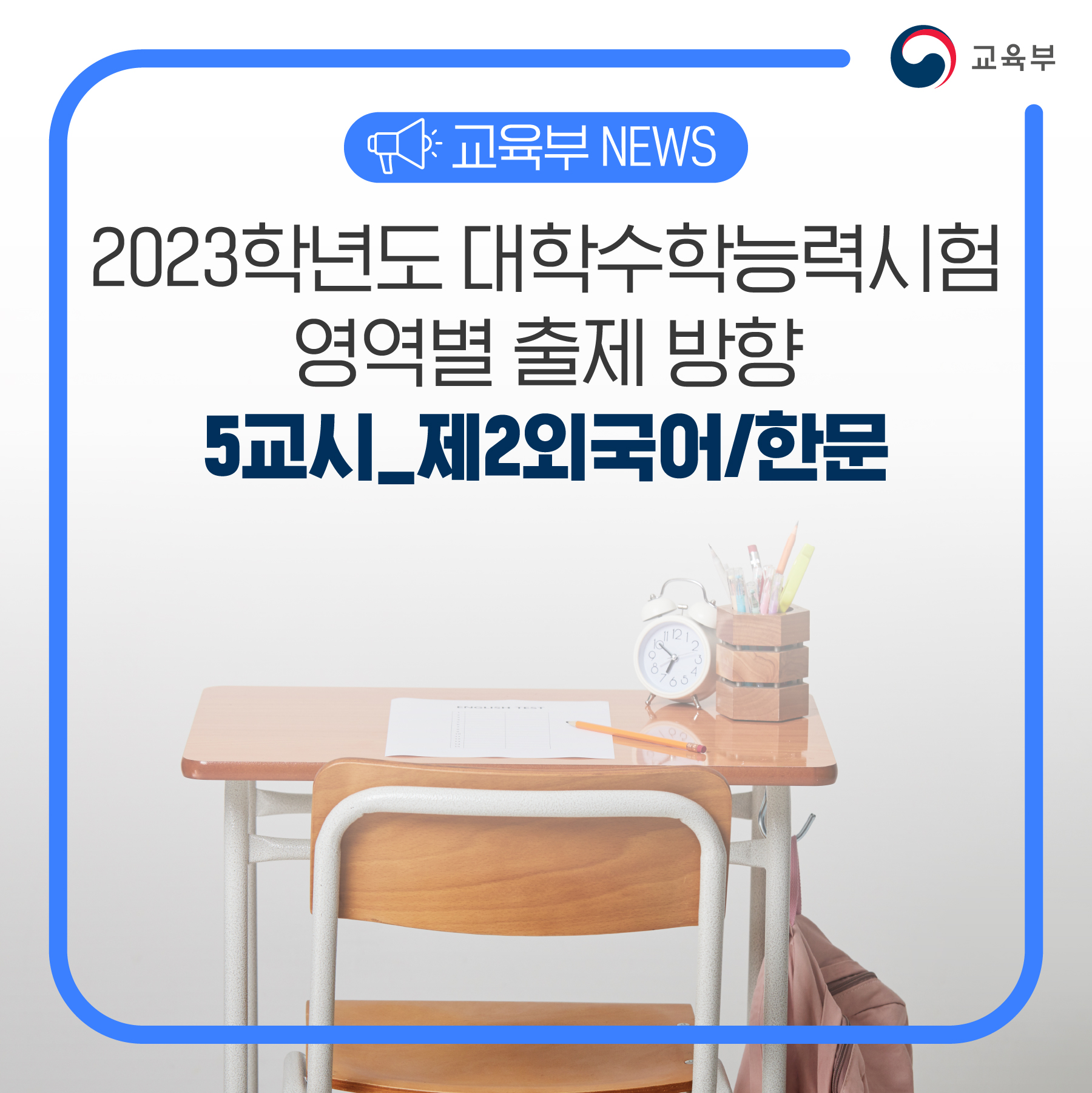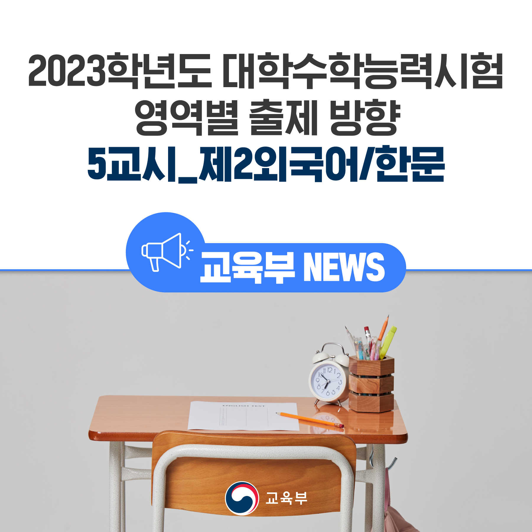 | 2023학년도 대학수학능력시험 영역별 출제방향 3교시_영어 영역 (0) | 2022.11.17 |