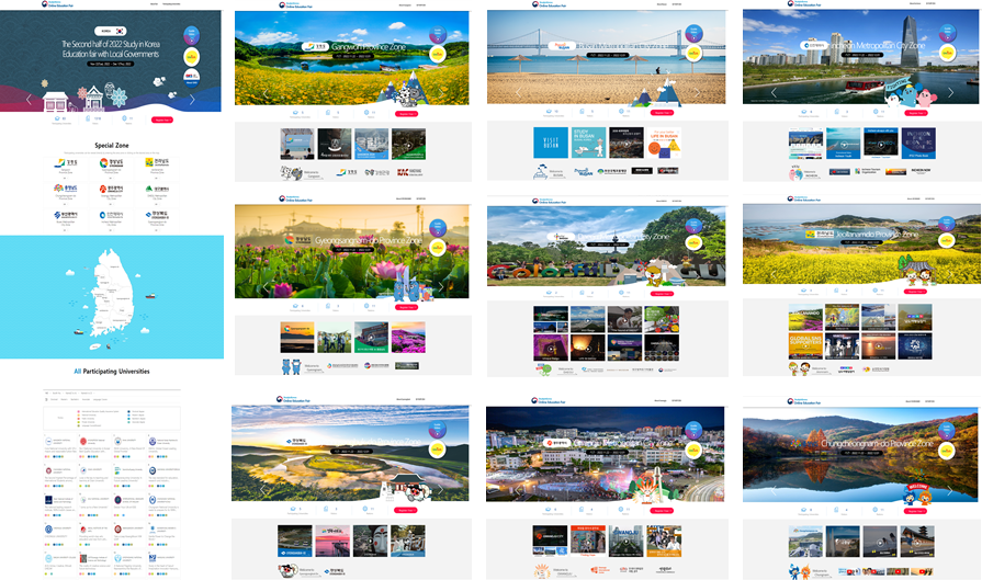 이번 박람회는 9개 지자체(역대 최다)*와 84개 대학이 지자체별 특별관을 운영하며 지역 홍보자료와 한국유학 정보를 풍성하게 탑재하여, 온라인 참가자들에게 보다 많은 볼거리와 흥미를 제공한다.