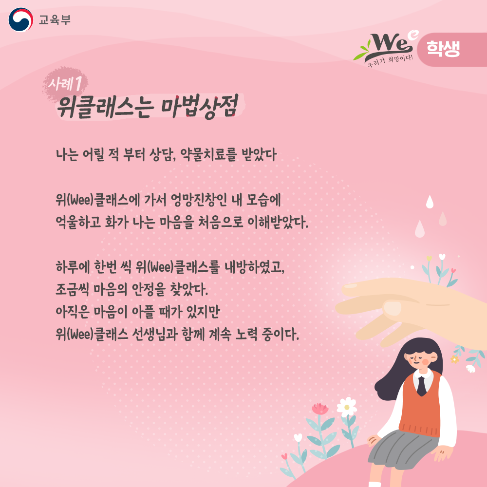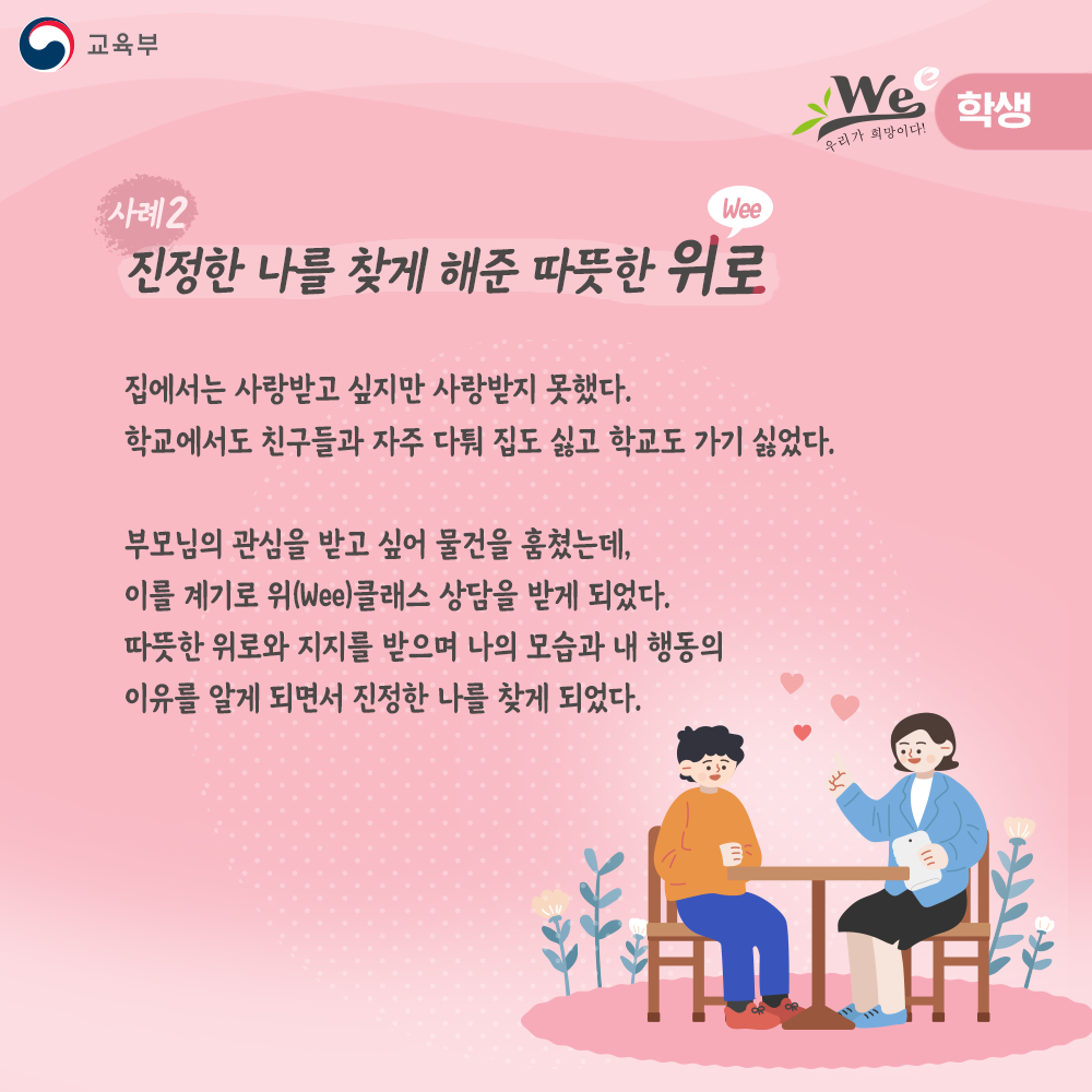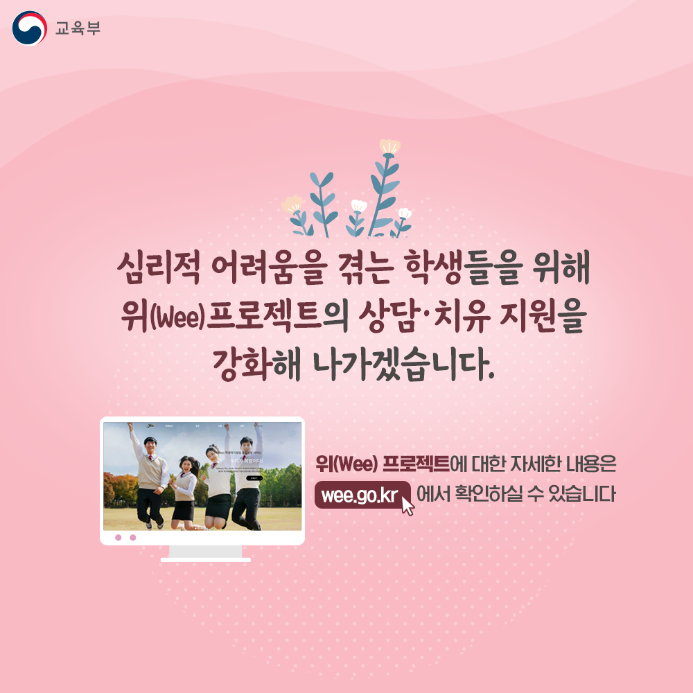 심리적 어려움을 겪는 학생들을 위해 위(Wee) 프로젝트의 상담•치유 지원을 강화해 나가겠습니다!