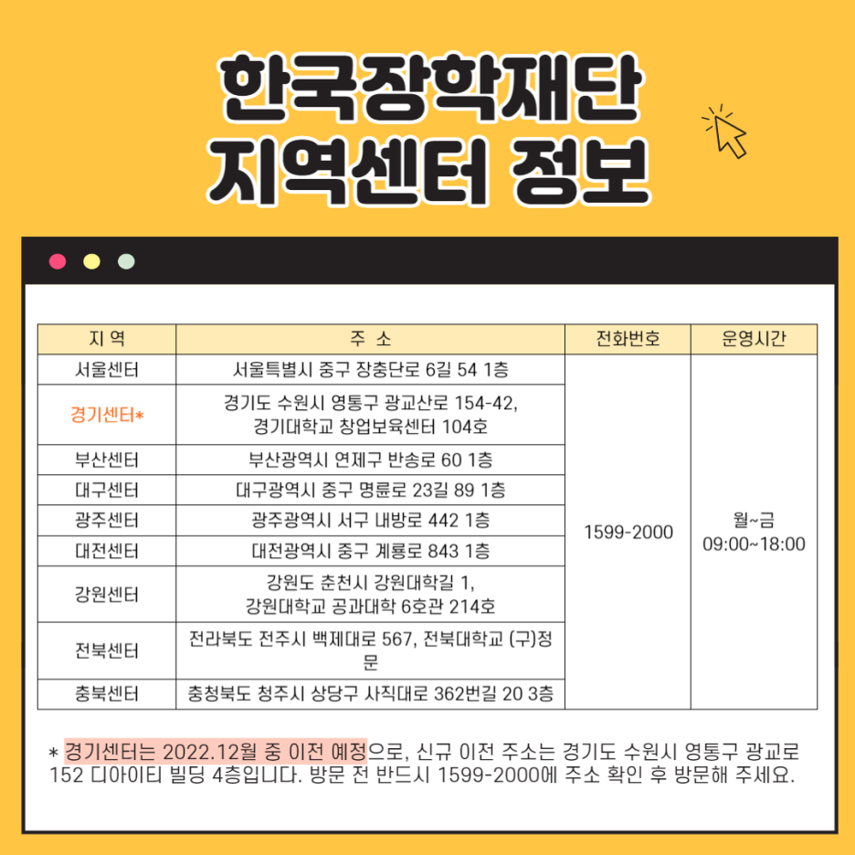 한국장학재단 지역센터 정보