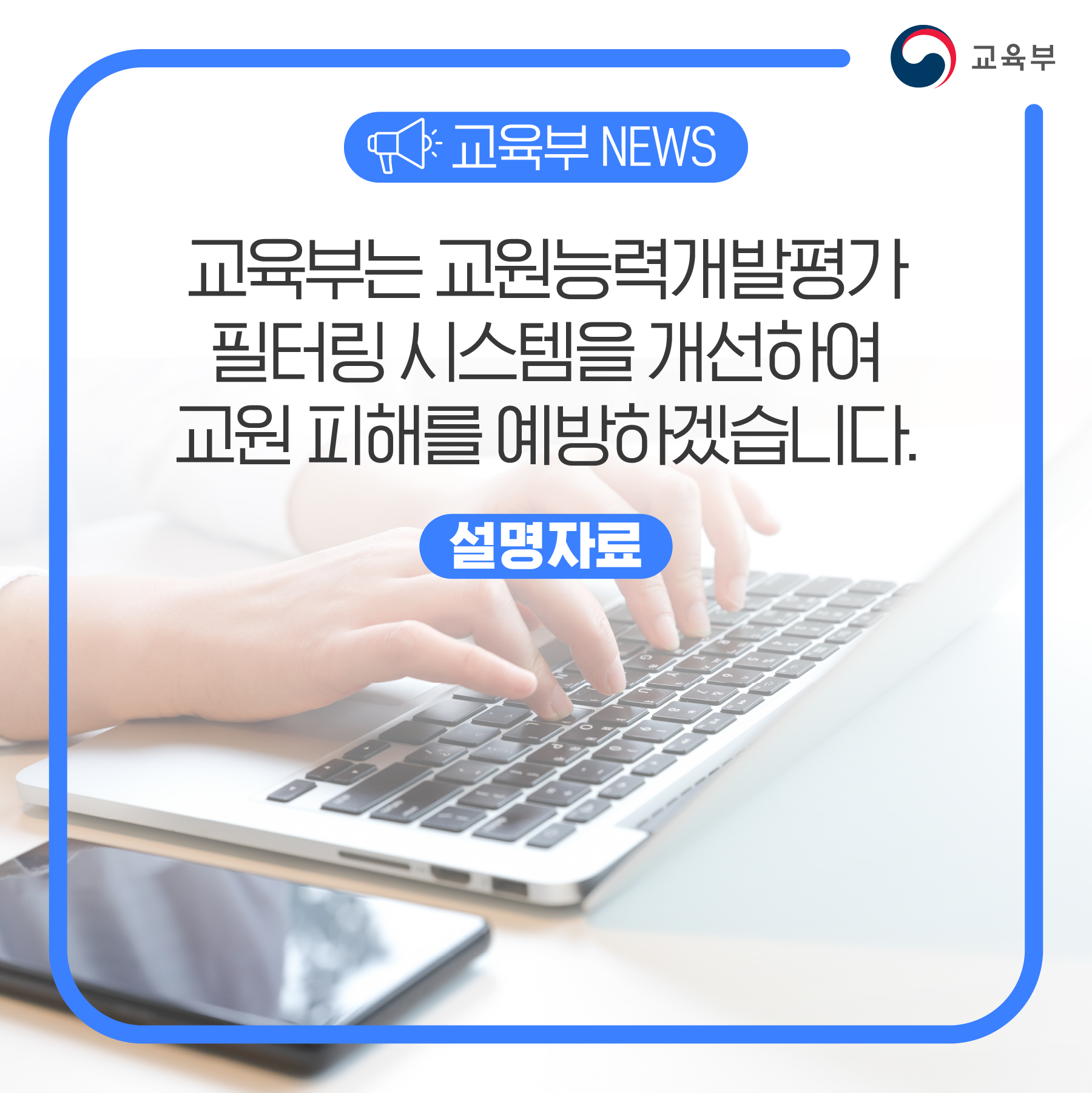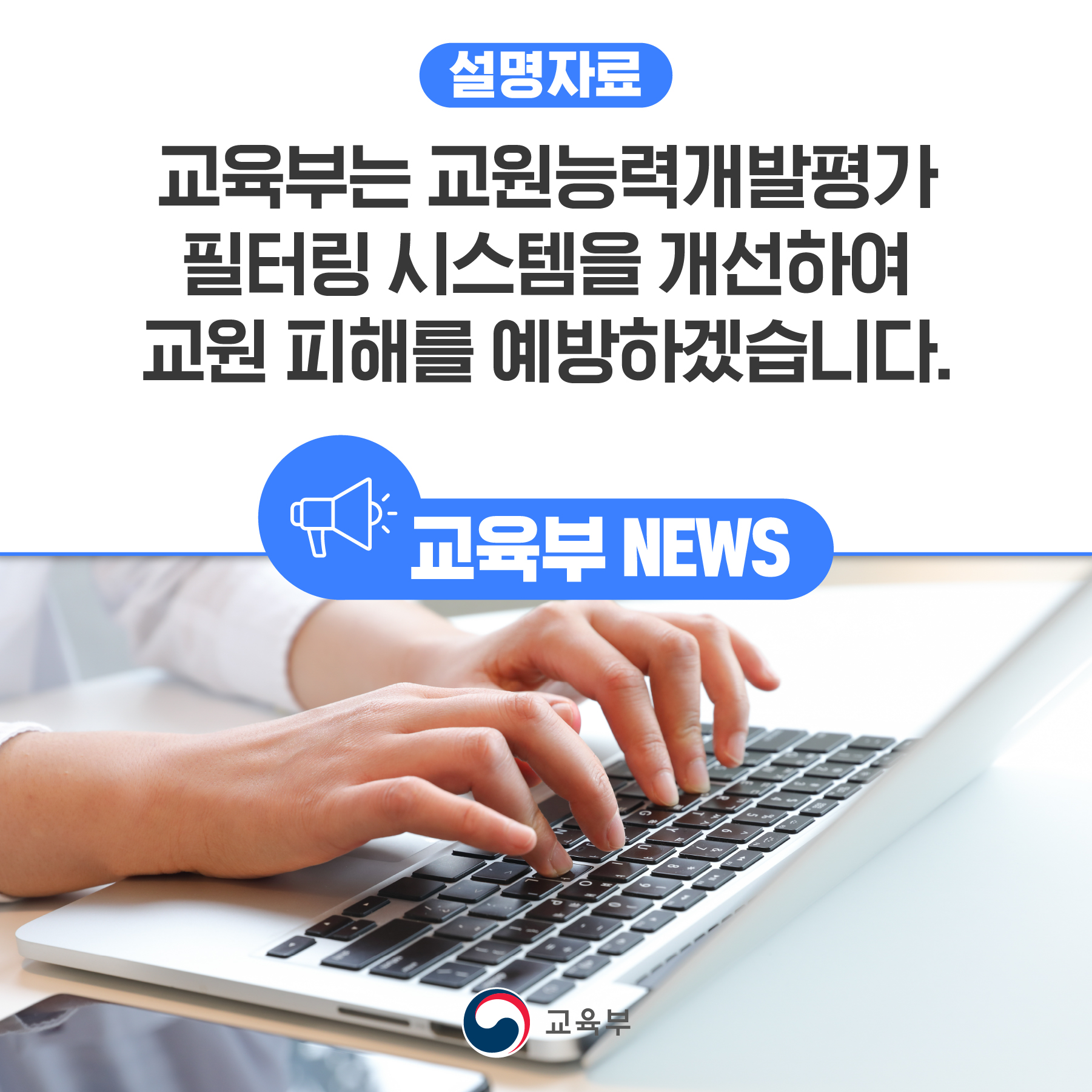 교육부는 교원능력개발평가 필터링 시스템을 개선하여 교원 피해를 예방하겠습니다. 본문