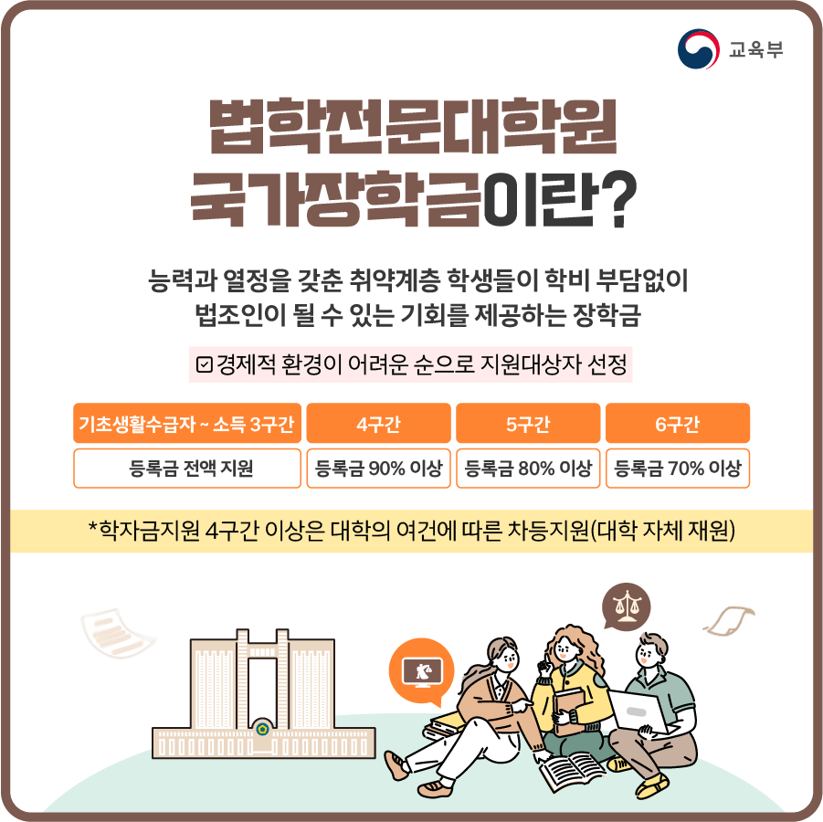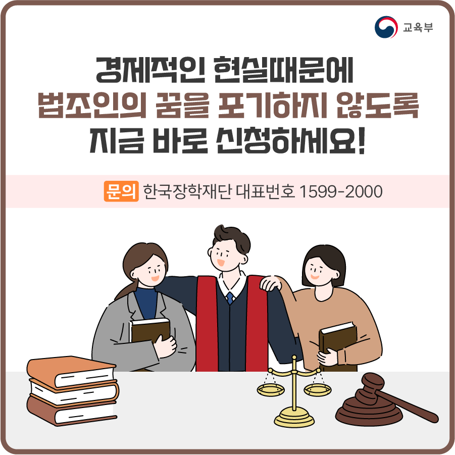법조인이 될 수 있는 기회를 제공하는 법학전문대학원 국가장학금!