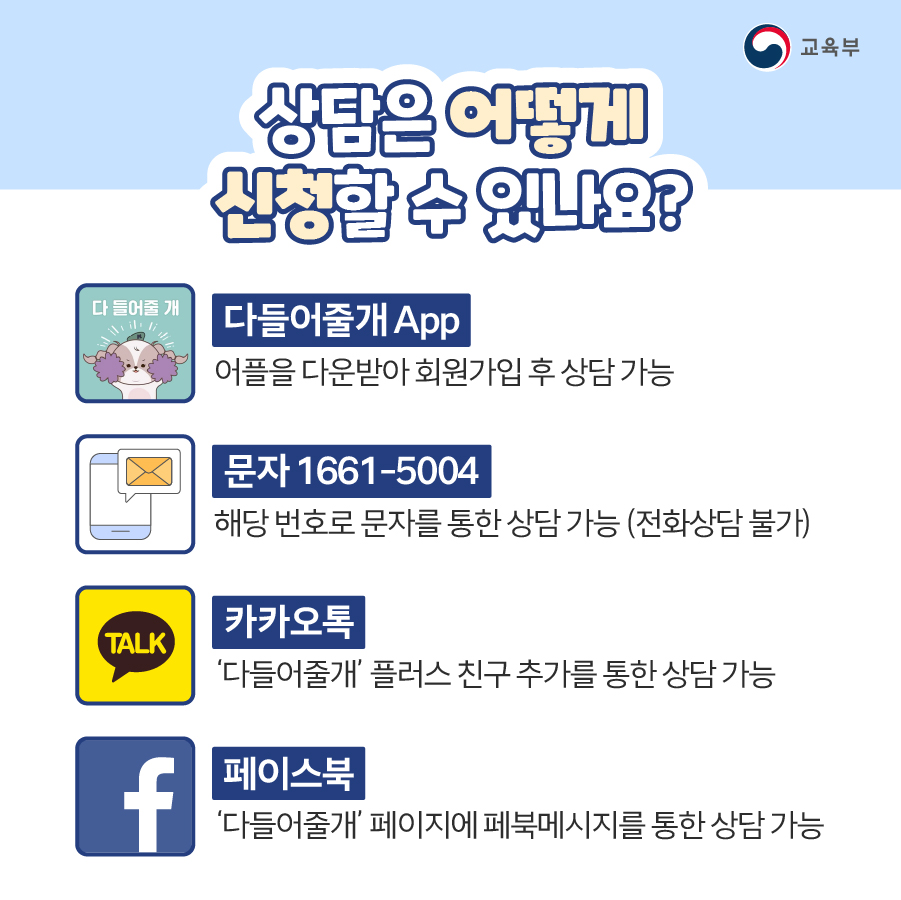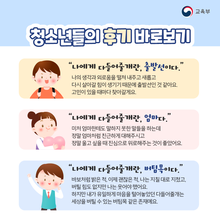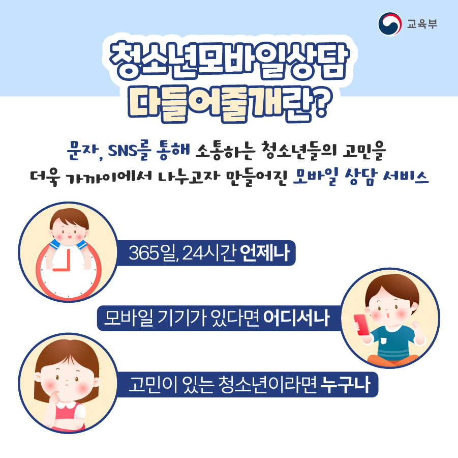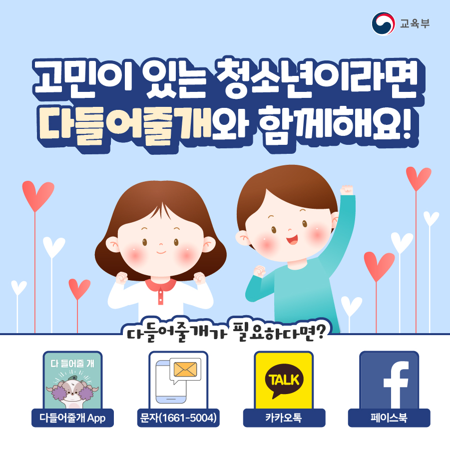 #교육부 #다들어줄개 #청소년 #모바일상담 #청소년상담