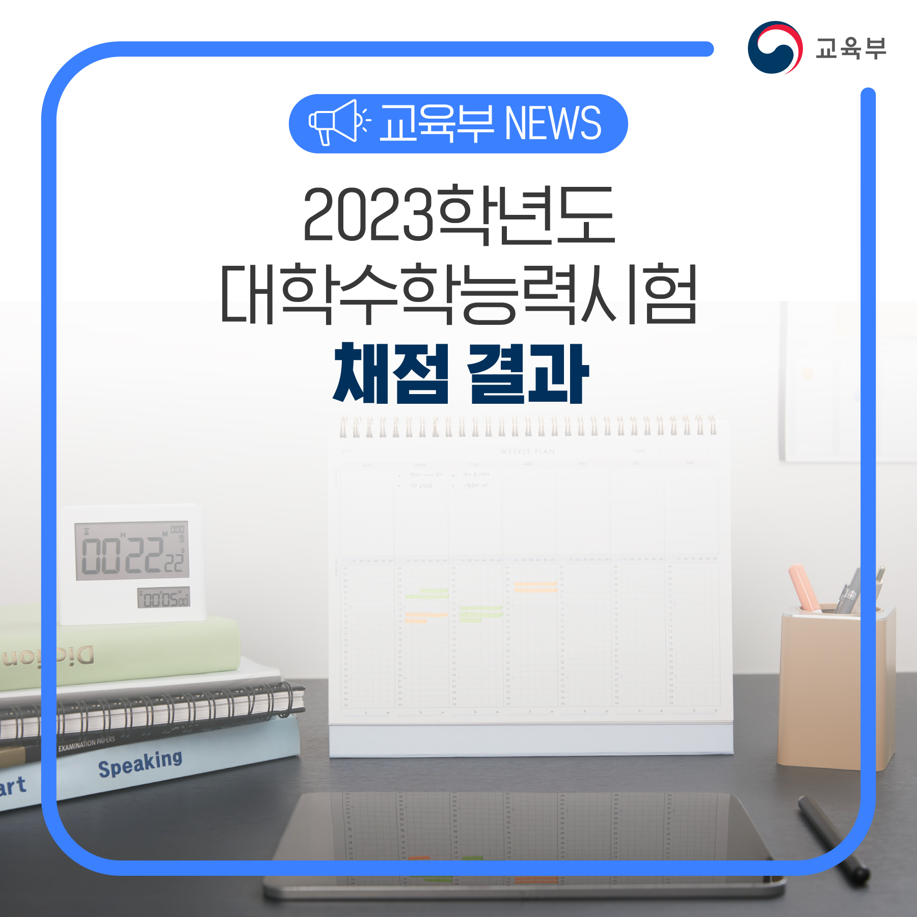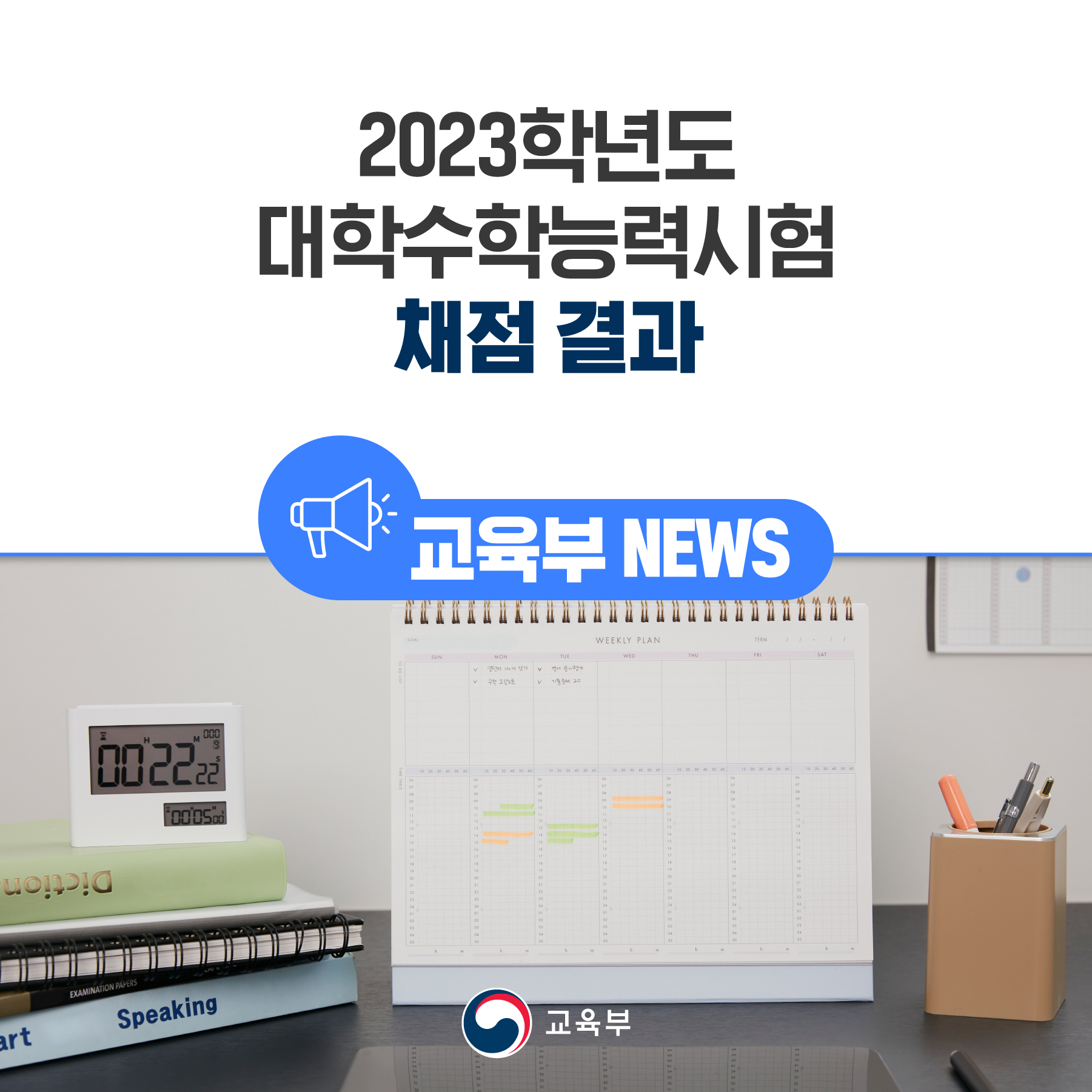 한국교육과정평가원(원장 이규민)은 지난 11월 17일(목) 전국적으로 실시된 2023학년도 대학수학능력시험(이하 수능) 채점 결과를 12월 9일(금) 수험생에게 통지한다. 개인별 성적통지표는 접수한 곳(재학 중인 학교, 시험 지구 교육청, 출신 학교 등)을 통하여 수험생에게 교부하며, ‘성적통지표 교부 및 온라인 성적증명서 발급’에 대한 안내문을 수능 홈페이지(www.suneung.re.kr)에 게시하였다([붙임] 참조). 아울러 수험생 진학 지도를 위해「영역/과목별 등급 구분 표준점수 및 도수분포」자료도 공개한다.