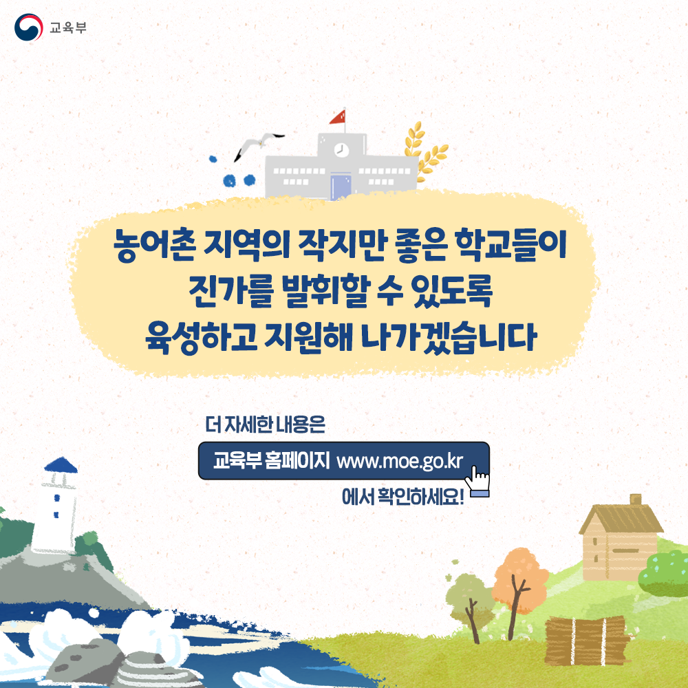 농어촌 지역의 작지만 좋은 학교들이 진가를 발휘할 수 있도록 육성하고 지원해 나가겠습니다
