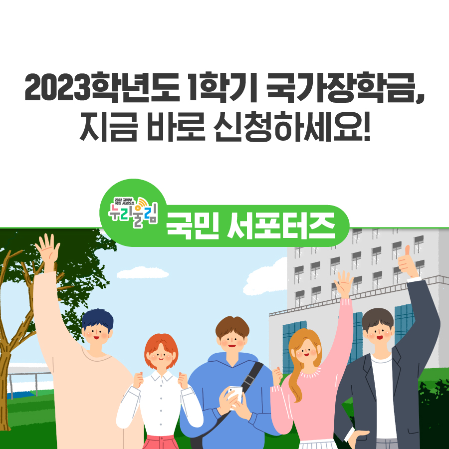 2023학년도 1학기 국가장학금, 지금 바로 신청하세요! 본문