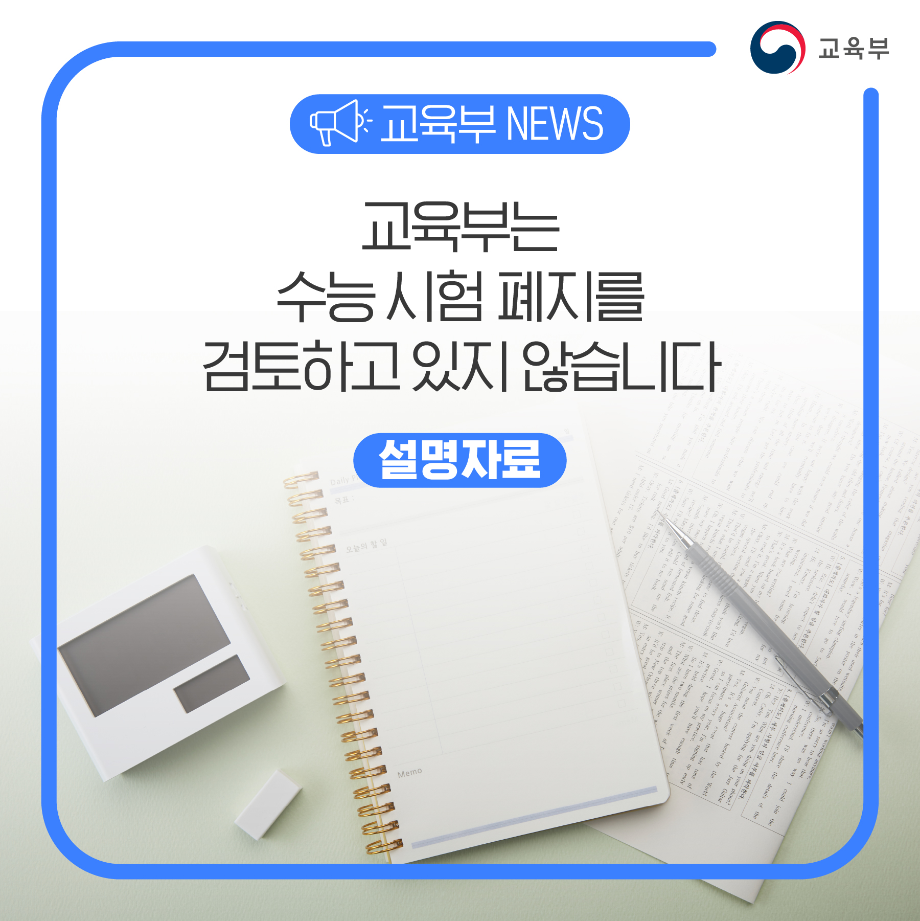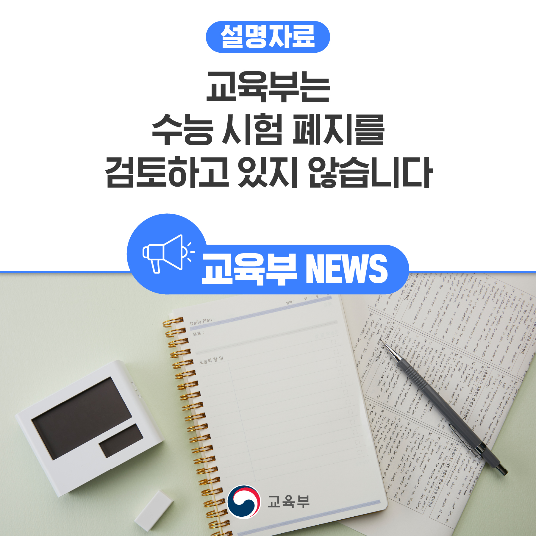 교육부는 수능 시험 폐지를 검토하고 있지 않습니다 본문