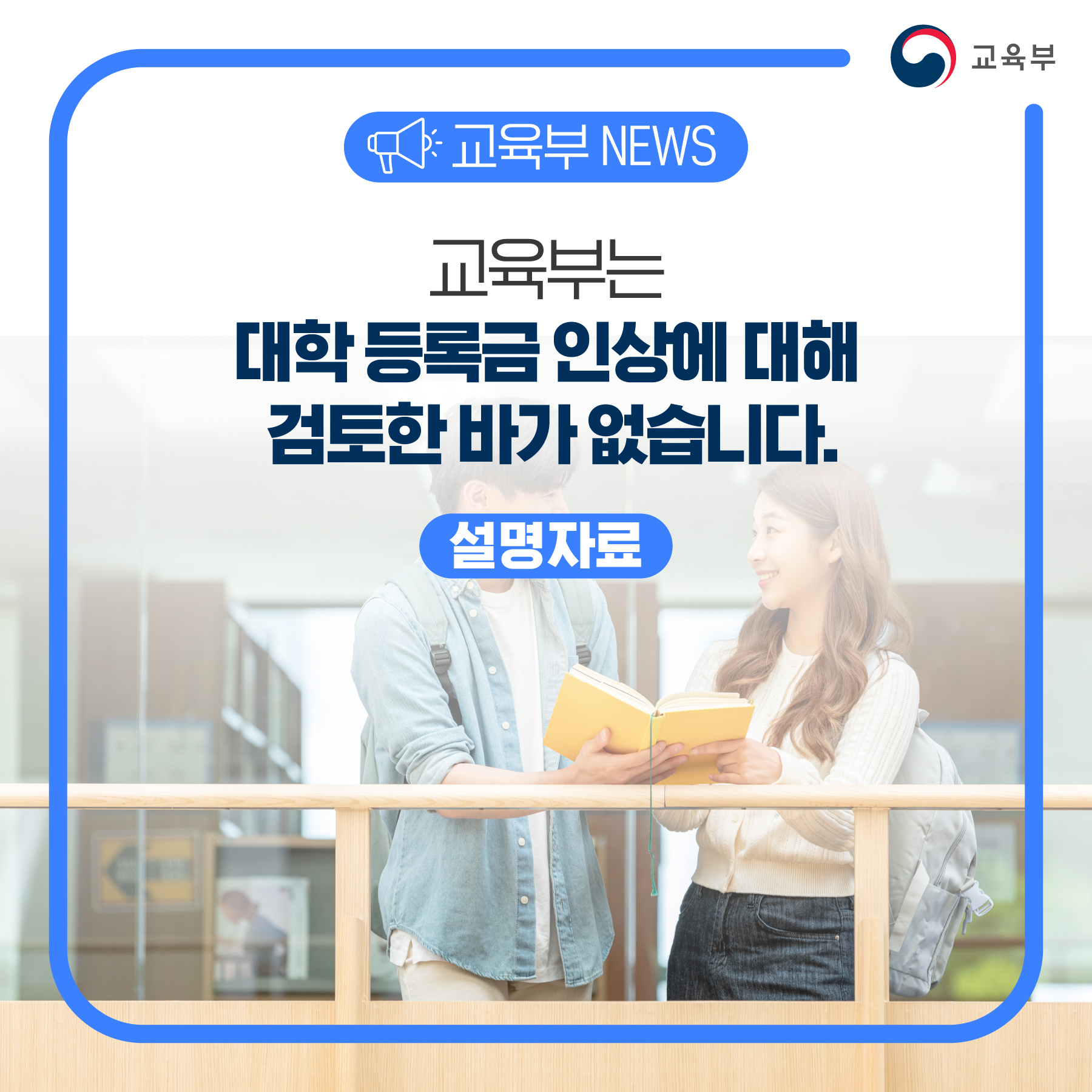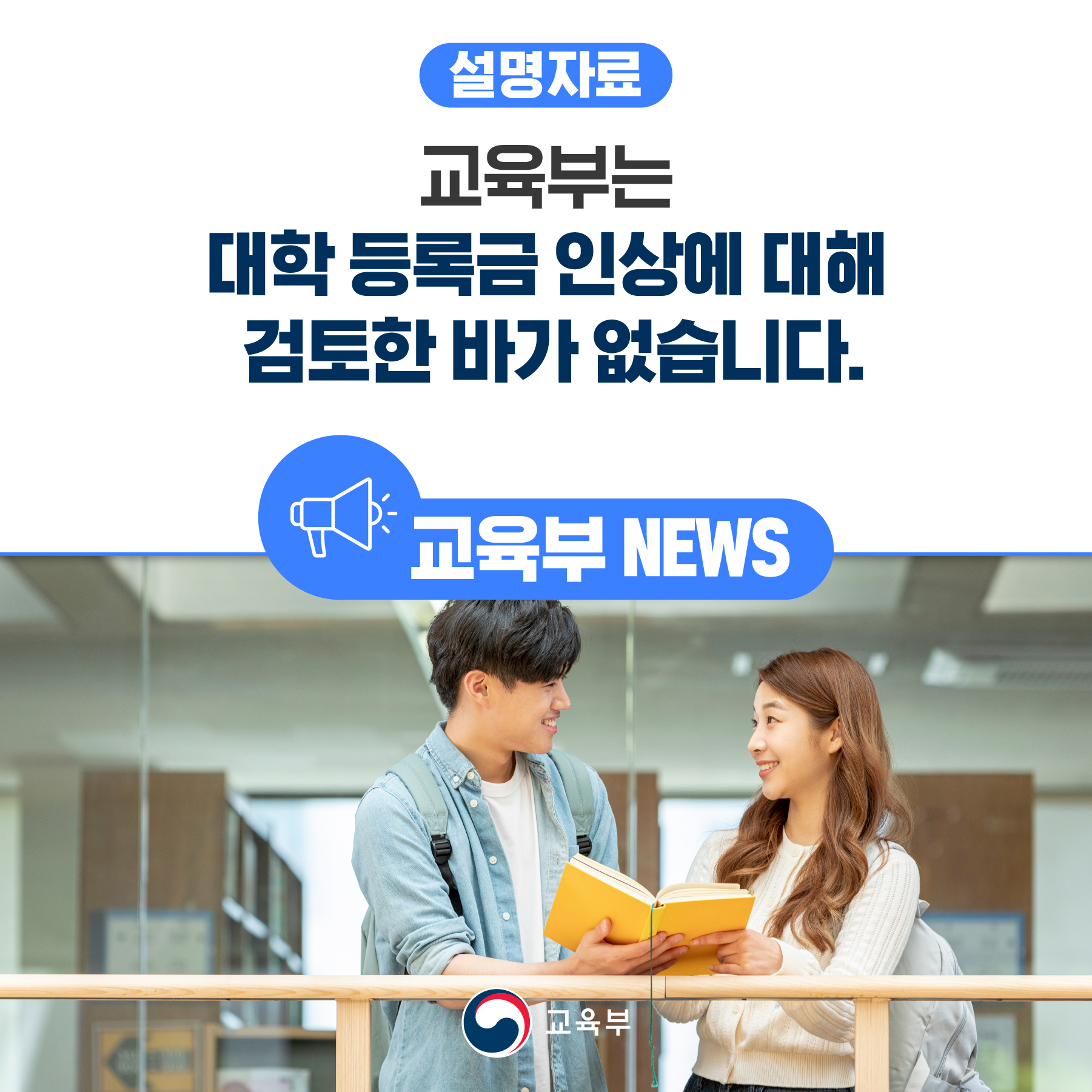 교육부가 2024년부터 등록금 인상을 사실상 허용하는 방안을 검토하고 있다는 언론보도 내용은 사실과 다릅니다.