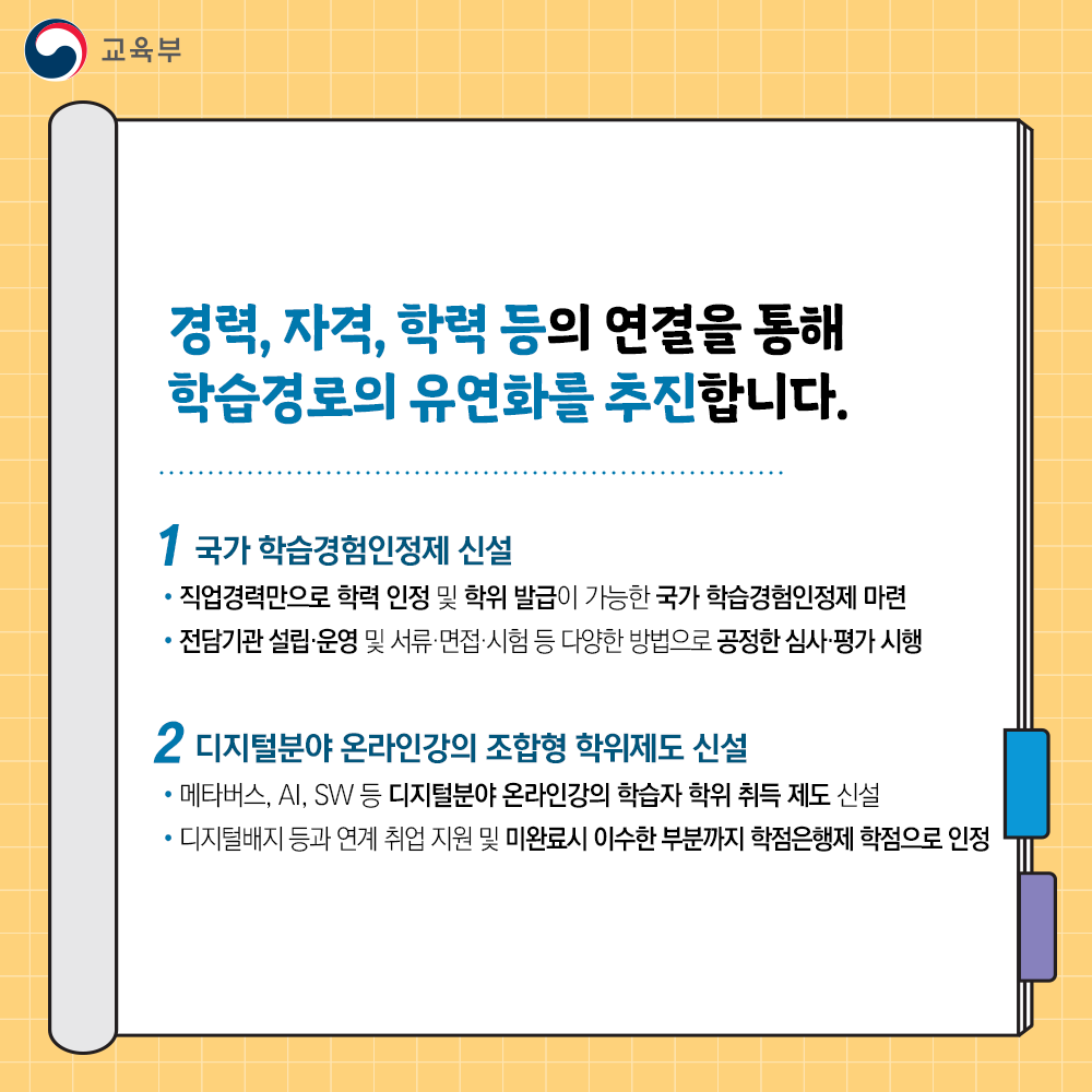 ✔경력, 자격, 학력 등의 연결을 통해 학습경로의 유연화를 추진합니다!