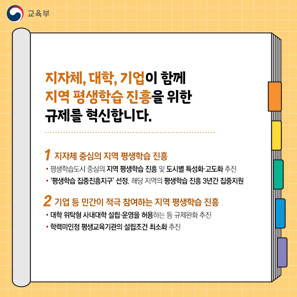 ✔지자체, 대학, 기업이 함께 지역 평생학습 진흥을 위한 규제를 혁신합니다!