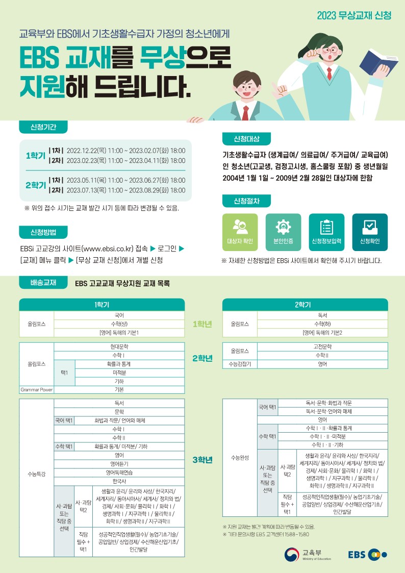 #교육부 #EBS #기초생활수급자 #무상지원 #신청기간 #EBS교재