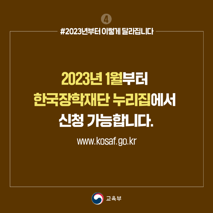 2023년 1월부터 한국장학재단 누리집에서 신청 가능합니다.