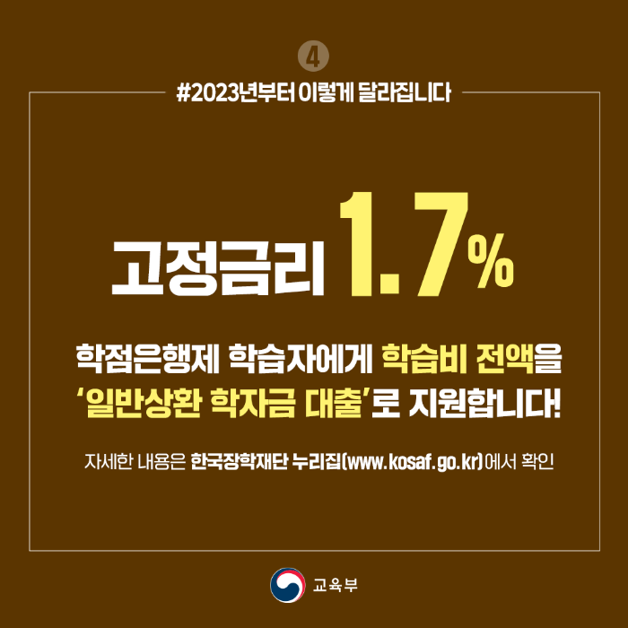고정금리 1.7%, 학점은행제 학습자에게 학습비 전액을 '일반상황 학자금 대출'로 지원합니다!