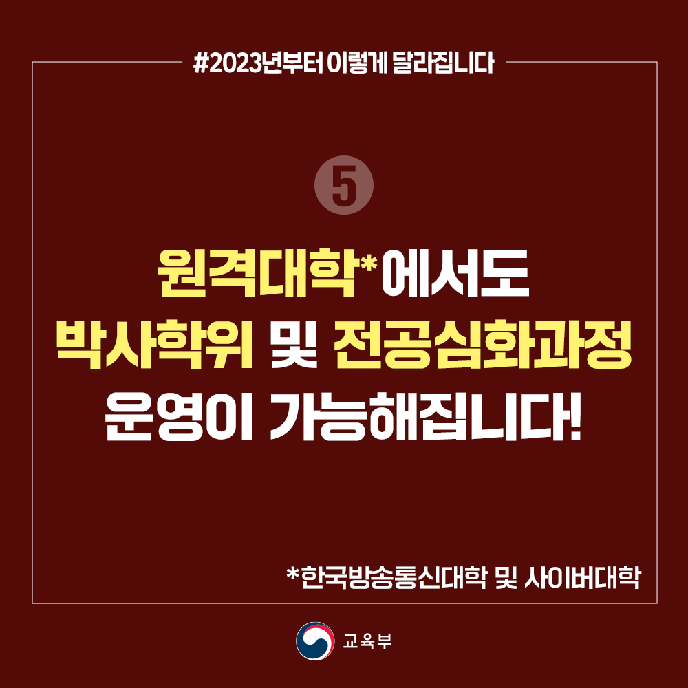 [2023년 이렇게 달라집니다] 원격대학에서도 박사학위 및 전공심화과정 운영가능 본문