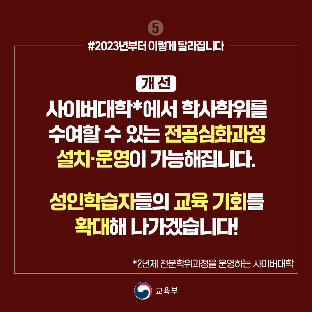개선) 성인 학습자들의 교육기회를 확대해 나가겠습니다!