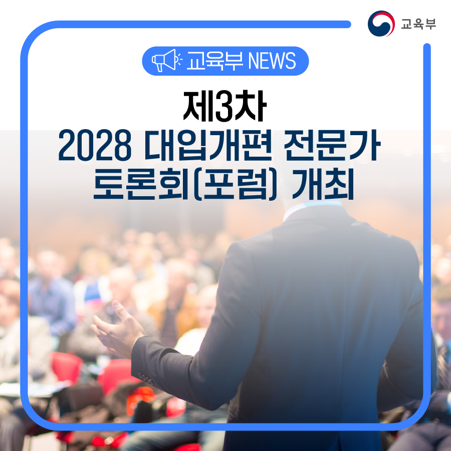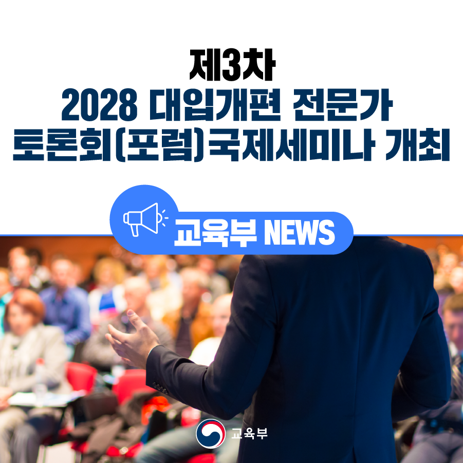 교육부(부총리 겸 교육부장관 이주호)는 한국대학교육협의회(회장 홍원화)와 함께 「제3차 2028 대입개편 전문가 토론회(포럼)」를 1월 17일(화), 서강대학교에서 개최한다.