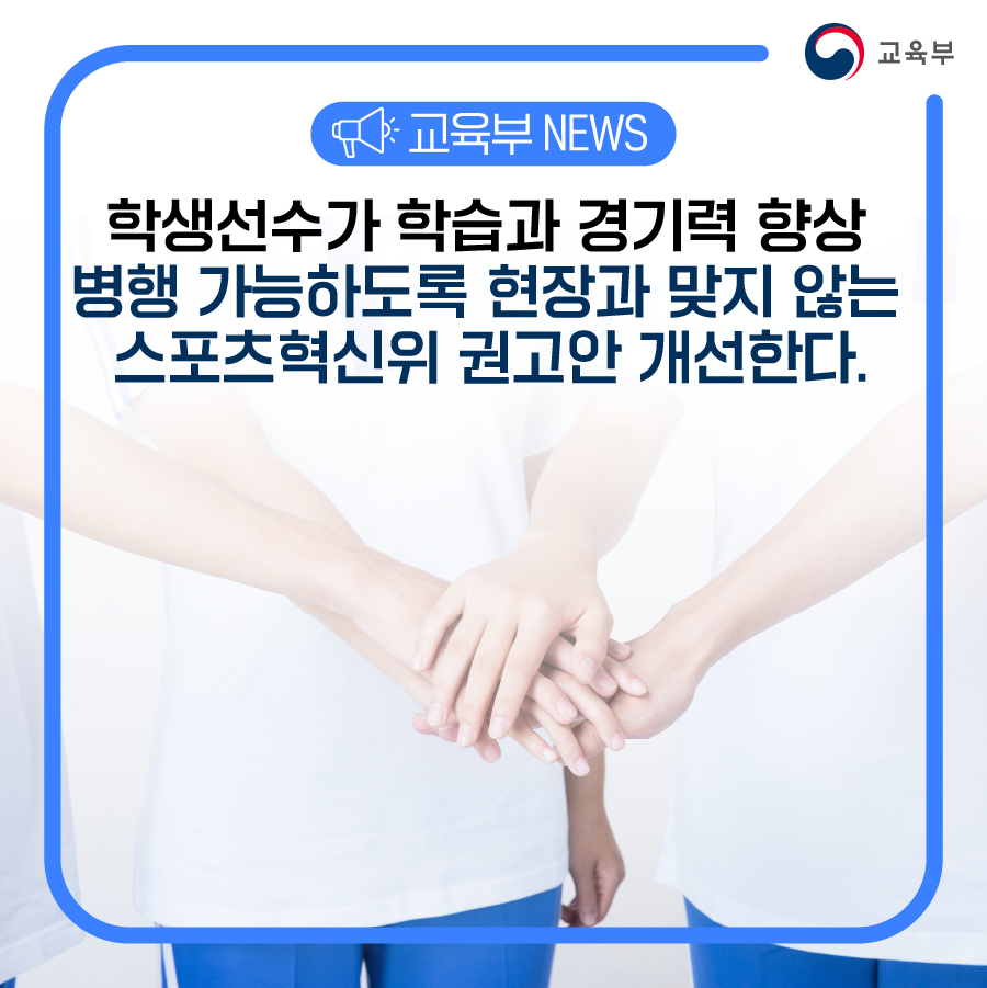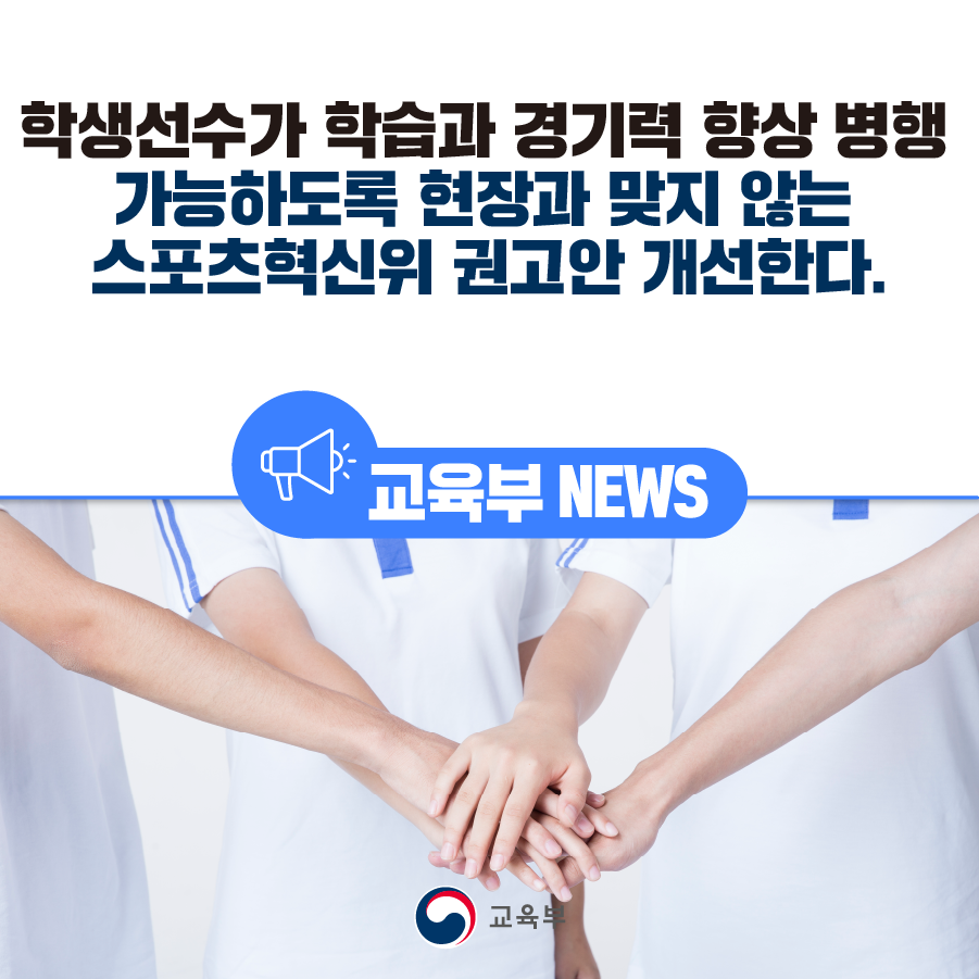 학생선수가 학습과 경기력 향상 병행 가능하도록 현장과 맞지 않는 스포츠혁신위 권고안 개선한다. 본문