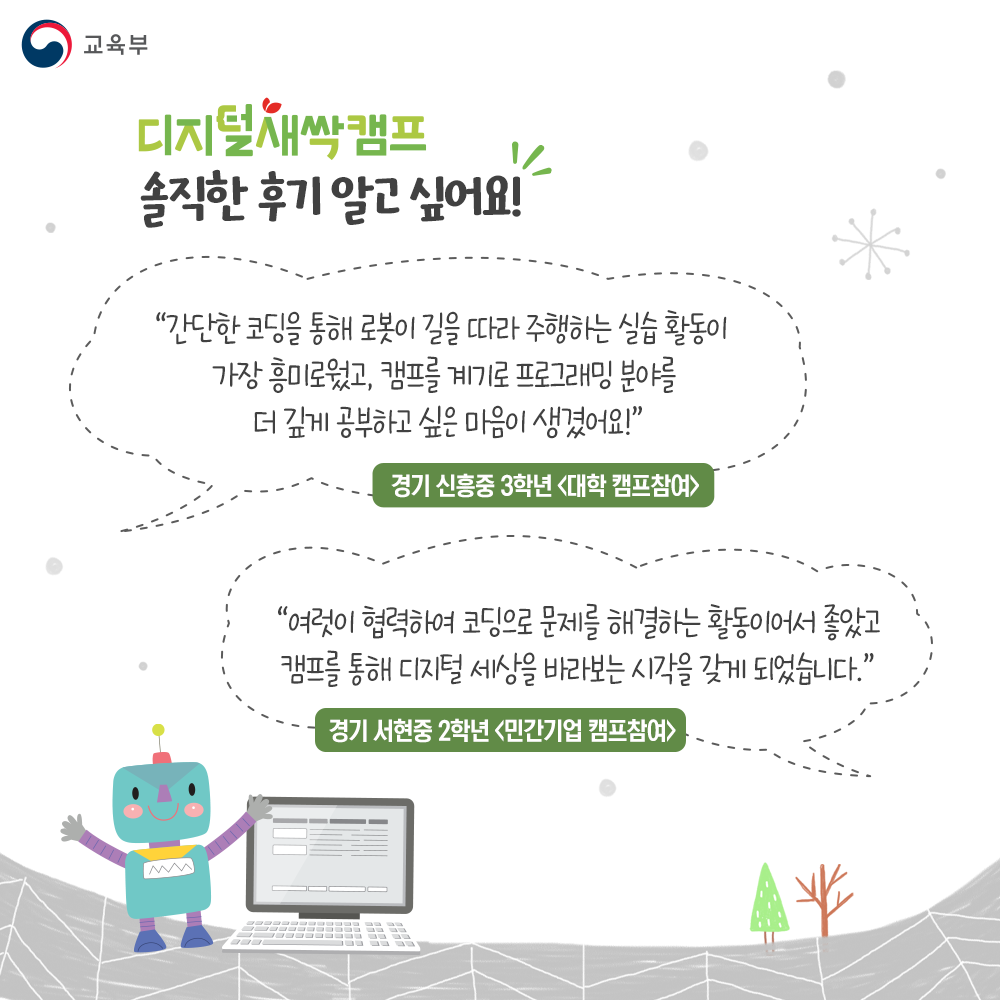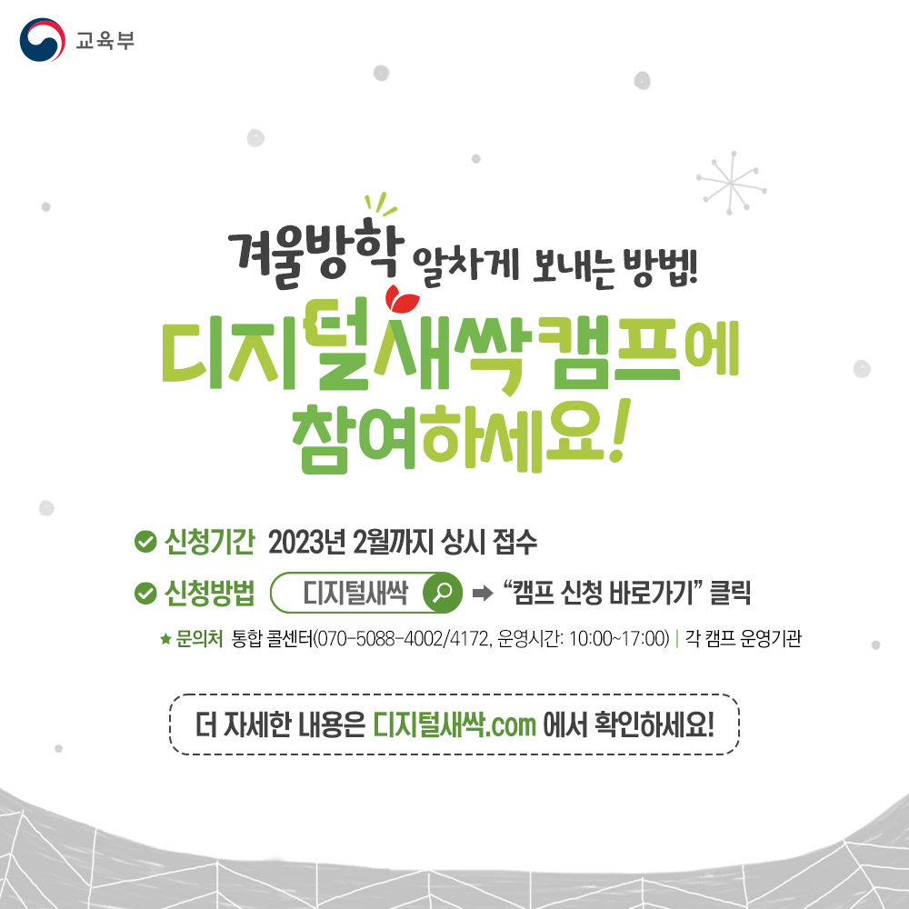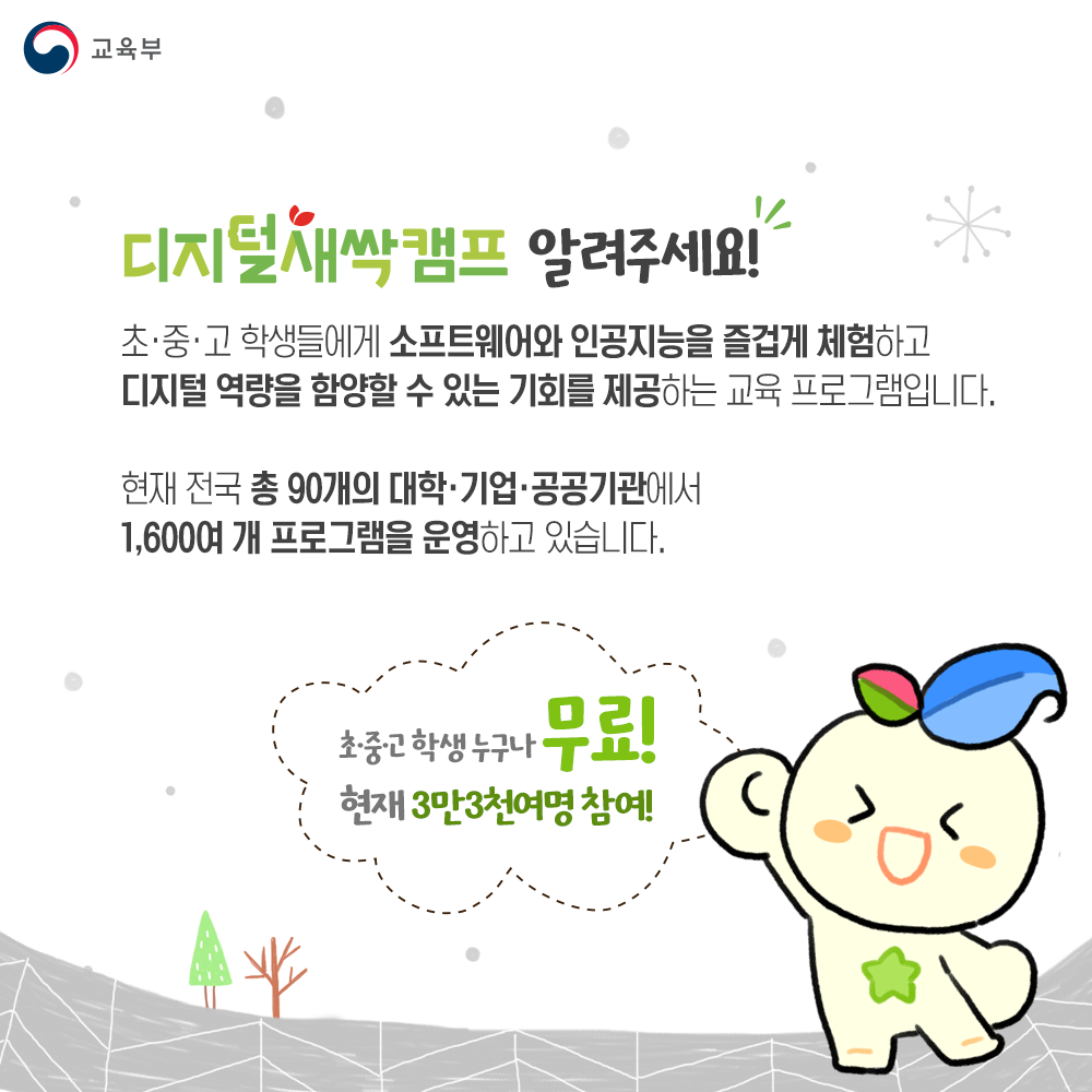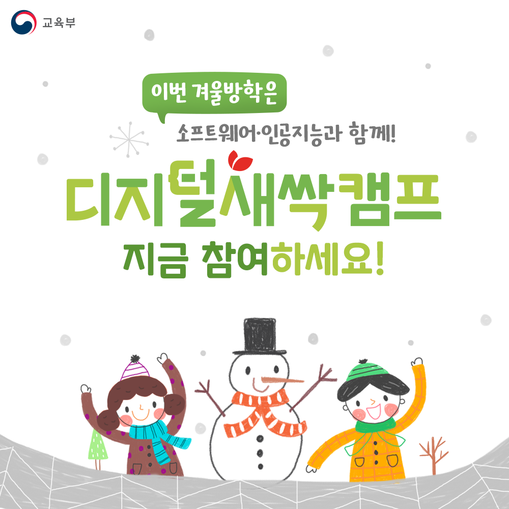 | 이번 겨울방학은 소프트웨어·인공지능과 함께! 디지털새싹캠프 지금 참여하세요! |