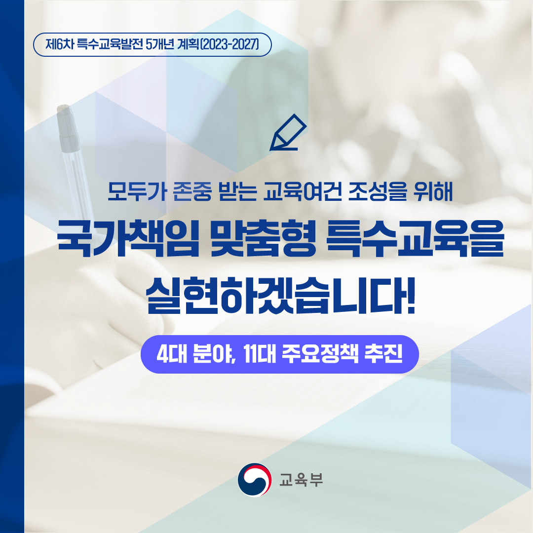 모두가 존중 받는 교육여건 조성을 위해 국가책임 맞춤형 특수교육을 실현하겠습니다. 본문