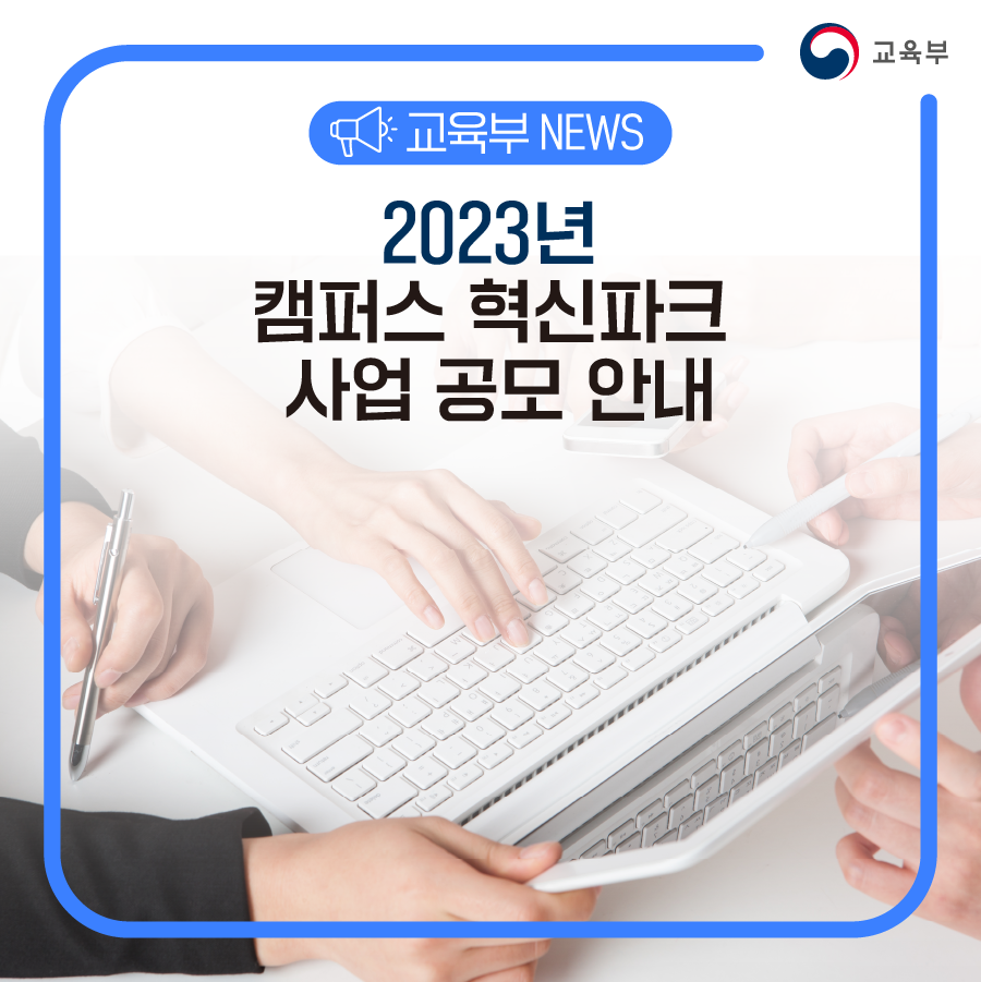 교육부(부총리 겸 교육부장관 이주호), 국토교통부(장관 원희룡), 중소벤처기업부(장관 이영)는 대학을 지역 내 혁신거점으로 조성하기 위한 ‘2023년 캠퍼스 혁신파크 사업’을 공모한다. 캠퍼스 혁신파크 사업은 대학 중심의 혁신생태계를 구축하고자 3개 부처(교육부, 국토교통부, 중소벤처기업부)가 함께 대학의 유휴부지를 도시첨단산업단지로 조성하고 산학연 혁신허브(기업입주공간)를 마련함으로써 정부의 산학연 협력을 강화하고 기업역량강화사업 등과 연계·활용하는 공동사업이다.