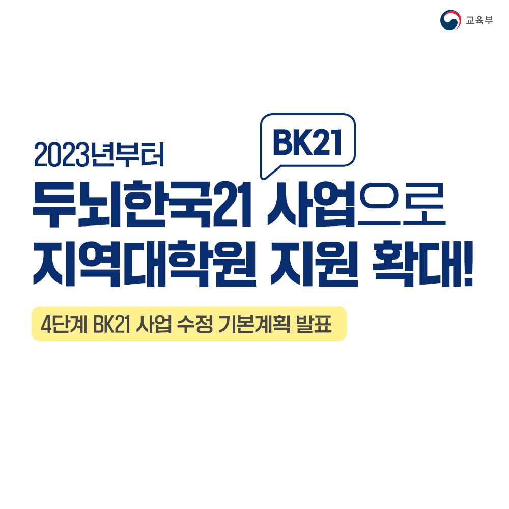 2023년부터 두뇌한국21(BK21) 사업으로 지역대학원 지원을 확대합니다! 본문