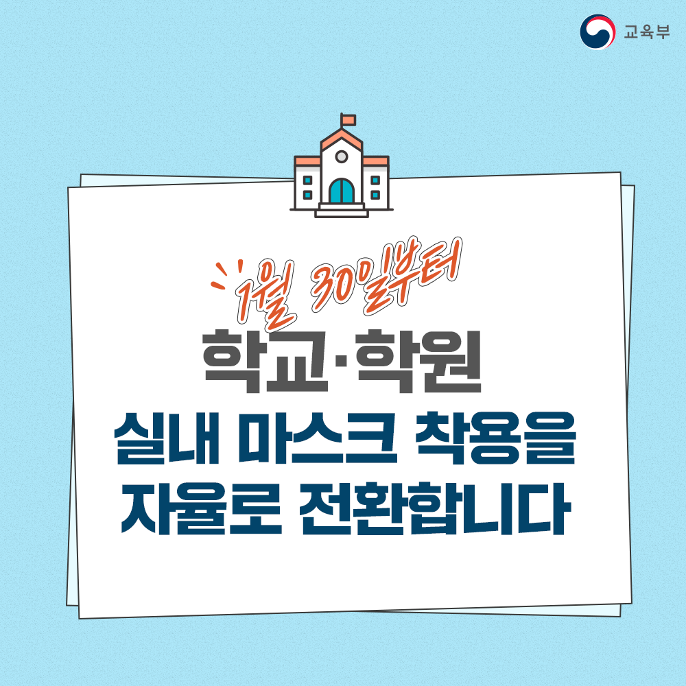 1월 30일부터 학교·학원 실내 마스크 착용을 자율로 전환합니다! 본문