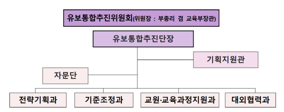 - 영유아 중심의 질 높은 새로운 교육‧돌봄 체계 마련을 위한 유보통합 추진
