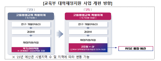향후 다른 중앙부처의 대학재정지원사업을 고등평생교육특별회계로 편입하고 단계적으로 라이즈(RISE)로 전환하도록 협의해 나갈 계획이다.