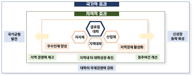 글로컬대학은 지역의 변화를 선도적으로 이끌고 지역 균형발전의 거점이 되어 국가균형발전, 나아가 국가경쟁력 제고에 기여할 것으로 기대된다.