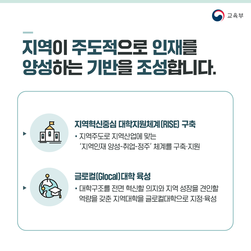 지역이 주도적으로 인재를 양성하는 기반을 조성합니다.