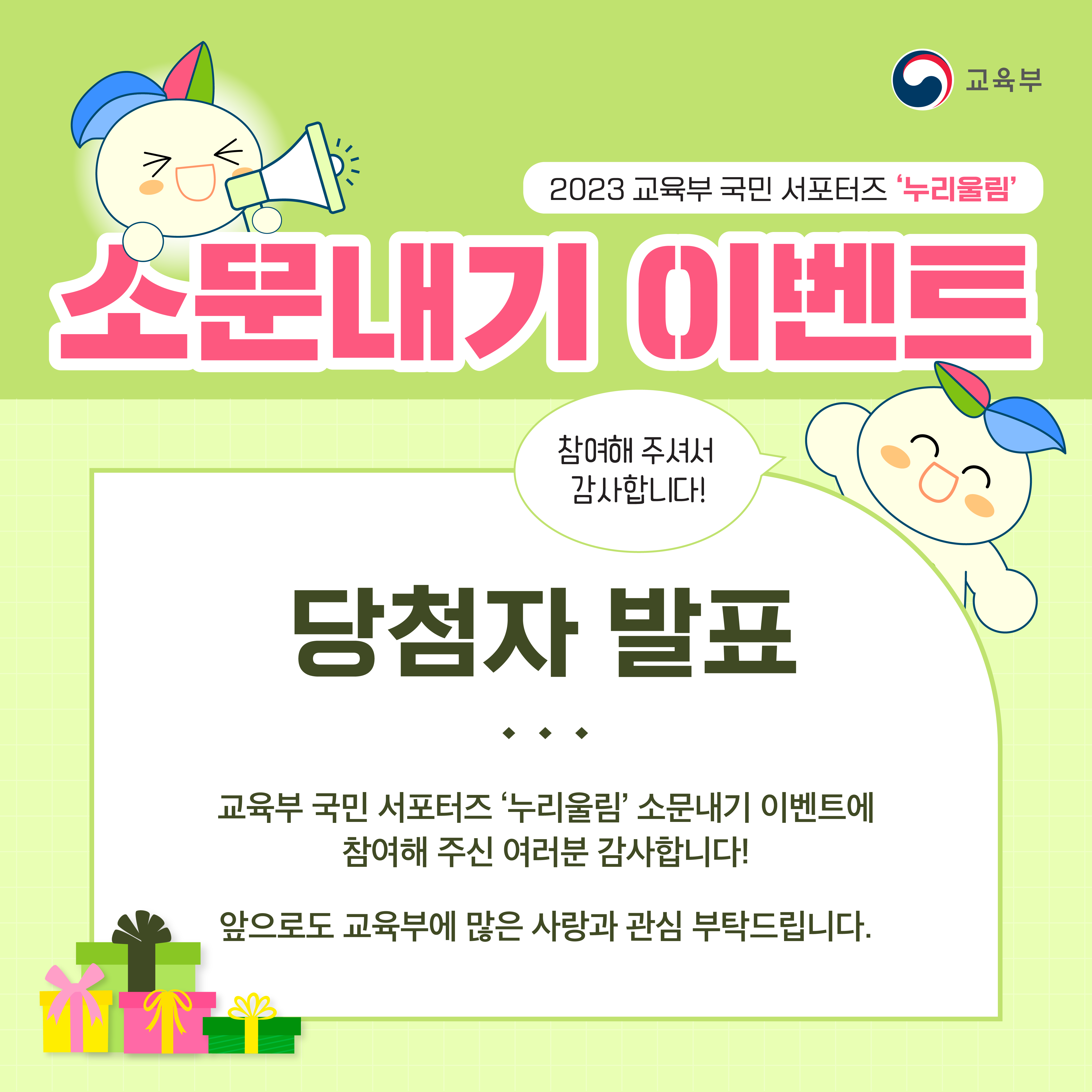 2023 교육부 국민 서포터즈 '누리울림' 소문내기 이벤트 당첨자 발표 본문