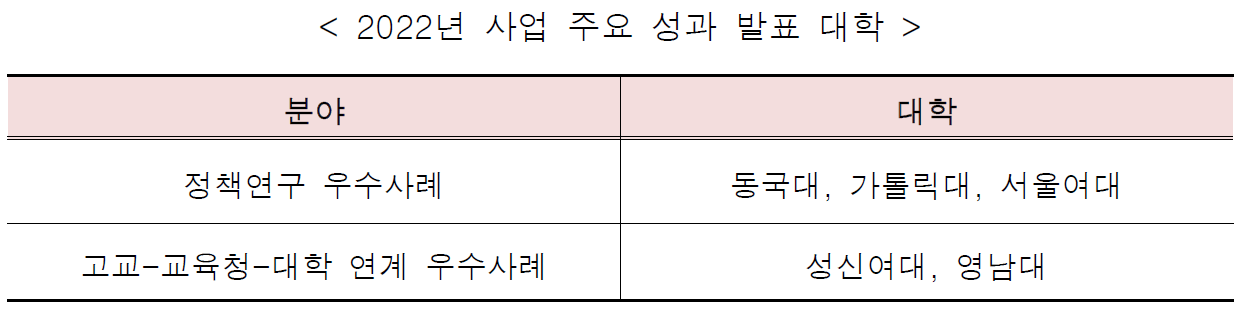 | 2022년 고교교육 기여대학 지원사업 성과공유회 개최 |