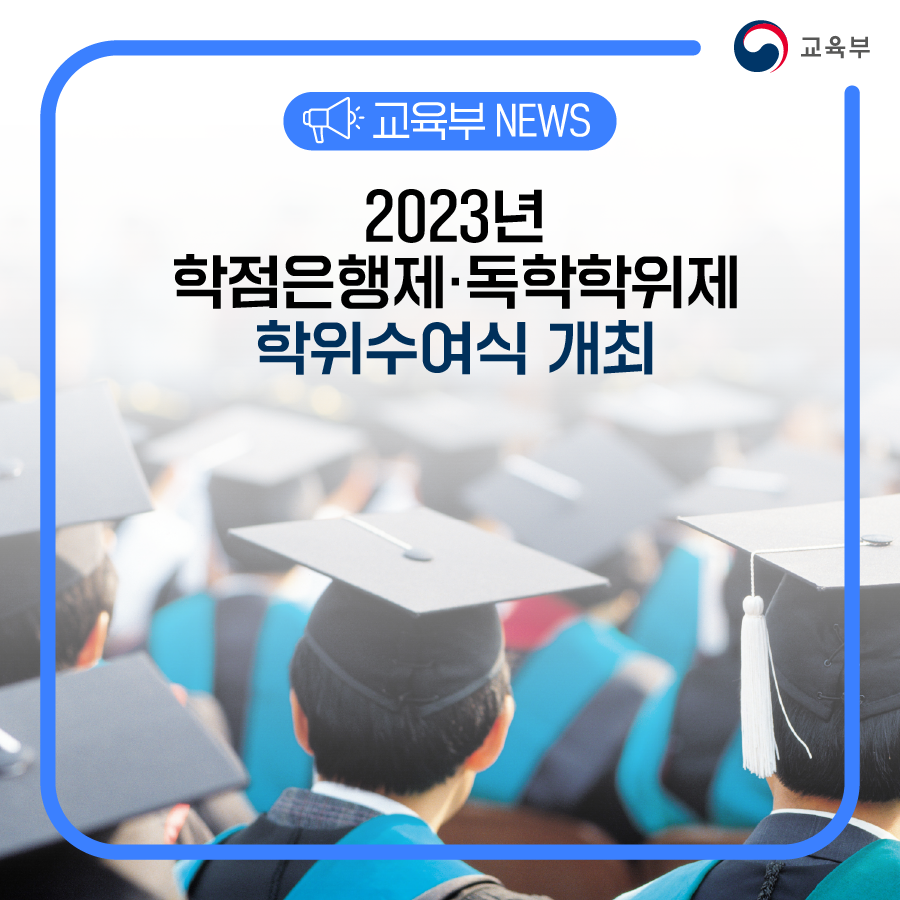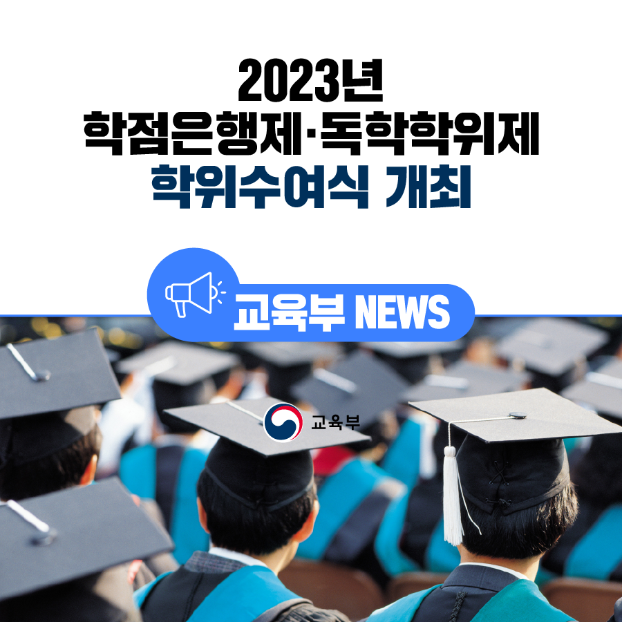 교육부(부총리 겸 교육부장관 이주호)와 국가평생교육진흥원(원장 강대중)은 “2023년 학점은행제 · 독학학위제 학위수여식”을 2월 24일(금), 국가평생교육진흥원 유튜브를 통해 개최한다.