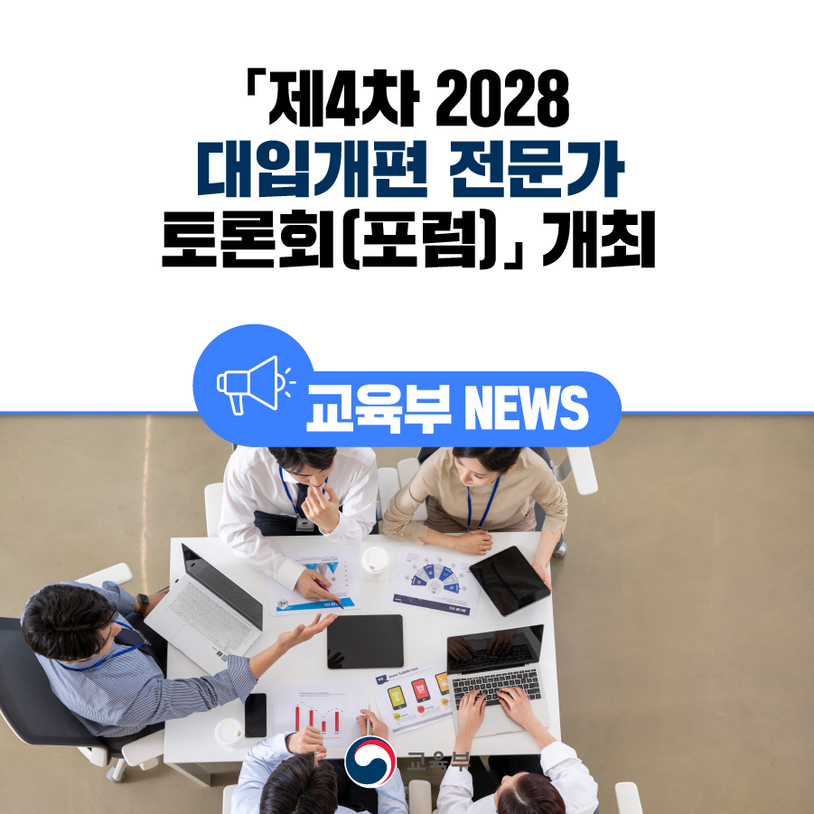 교육부(부총리 겸 교육부장관 이주호)는 한국대학교육협의회(회장 홍원화)와 함께 「제4차 2028 대입개편 전문가 토론회(포럼)」를 2월 27일(월), 성균관대학교에서 개최한다.