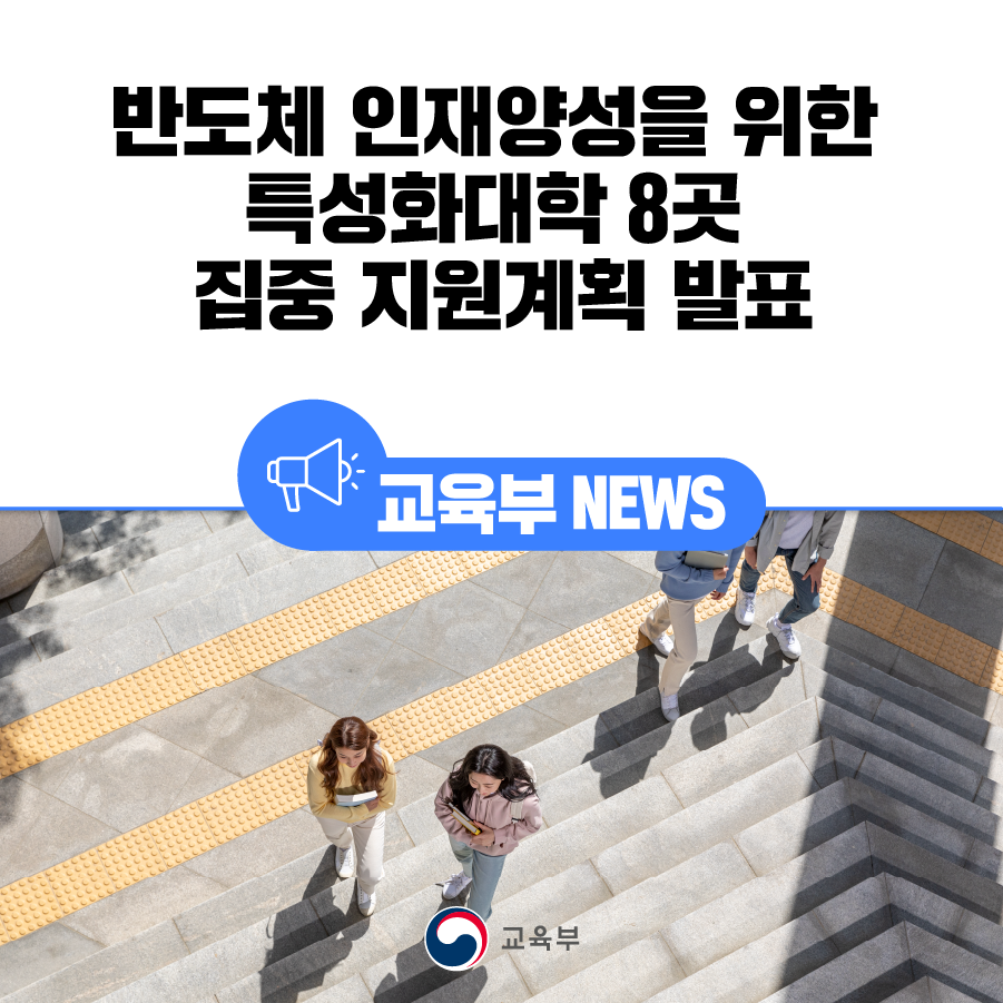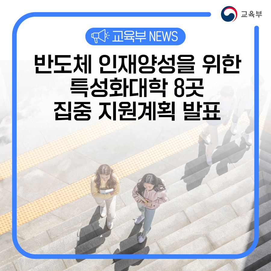 교육부(부총리 겸 교육부장관 이주호)와 한국산업기술진흥원(원장 민병주)은 2월 28일(화), 대한상공회의소(서울)에서 「반도체 특성화대학 재정지원 기본계획(안)」에 대한 대학 관계자 의견을 수렴한다.