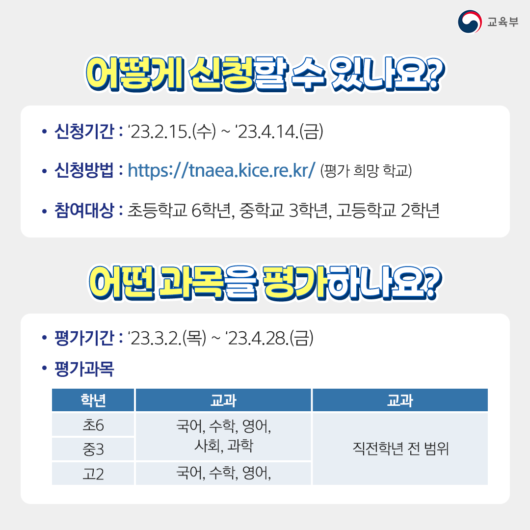 - 신청방법 : tnaea.kice.re.kr (평가 희망 학교)