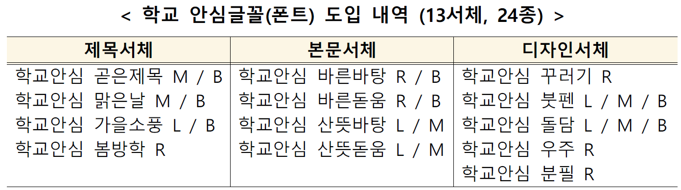 누구나 자유롭게 사용 가능한 학교 안심글꼴(폰트) 제공