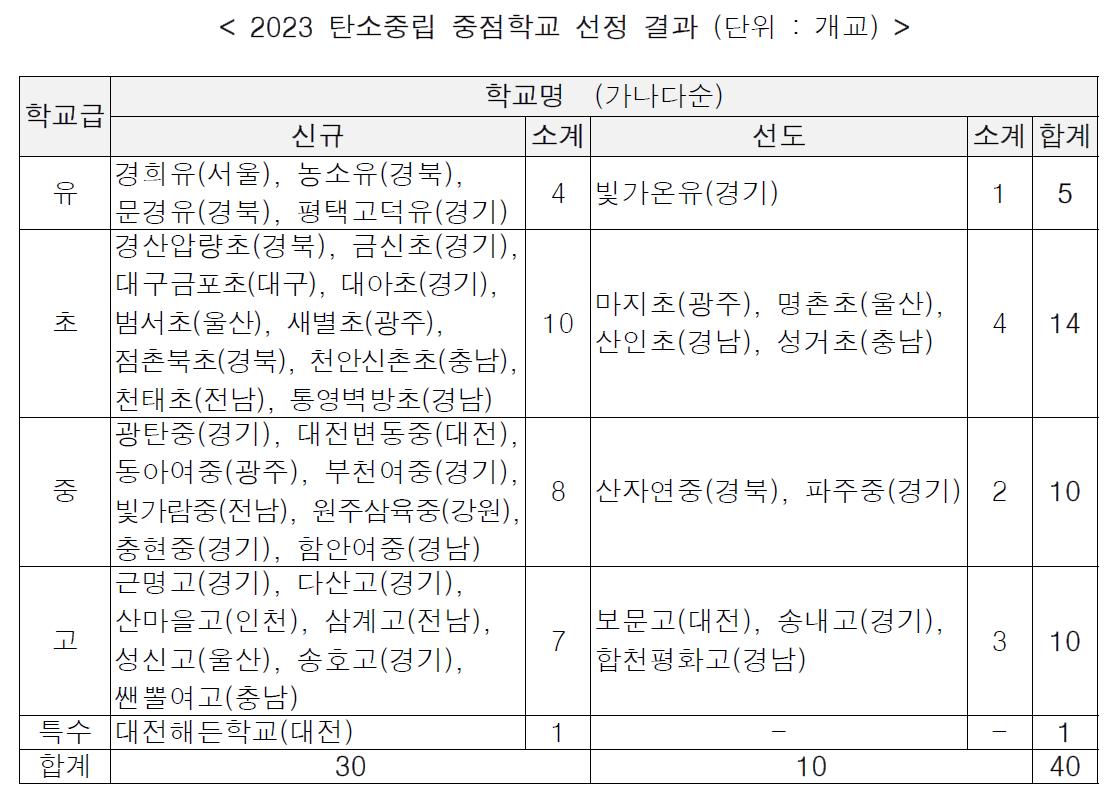 | 2023년 탄소중립 중점학교 40개교 선정 |