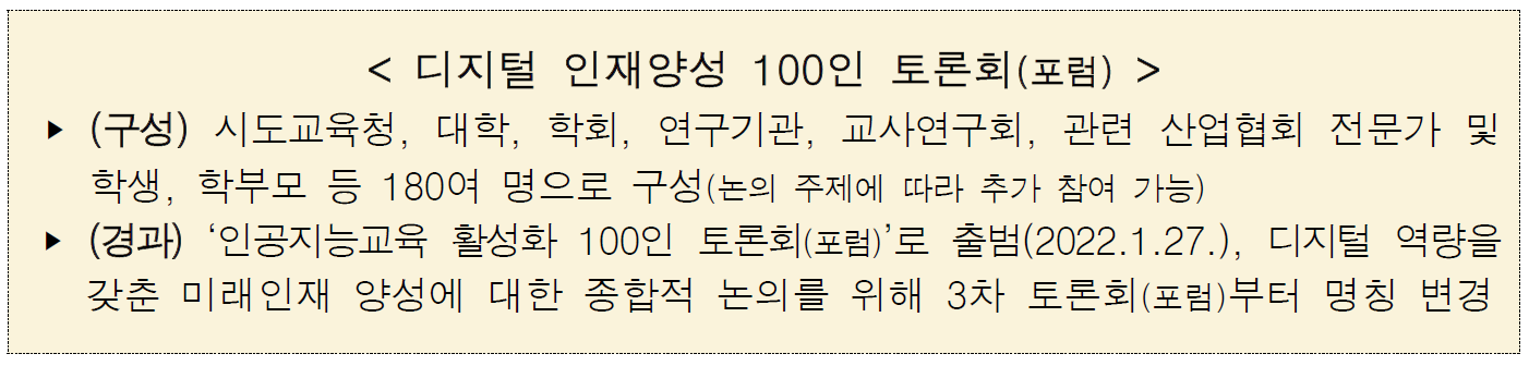 「제6차 디지털 인재양성 100인 토론회」 개최 본문
