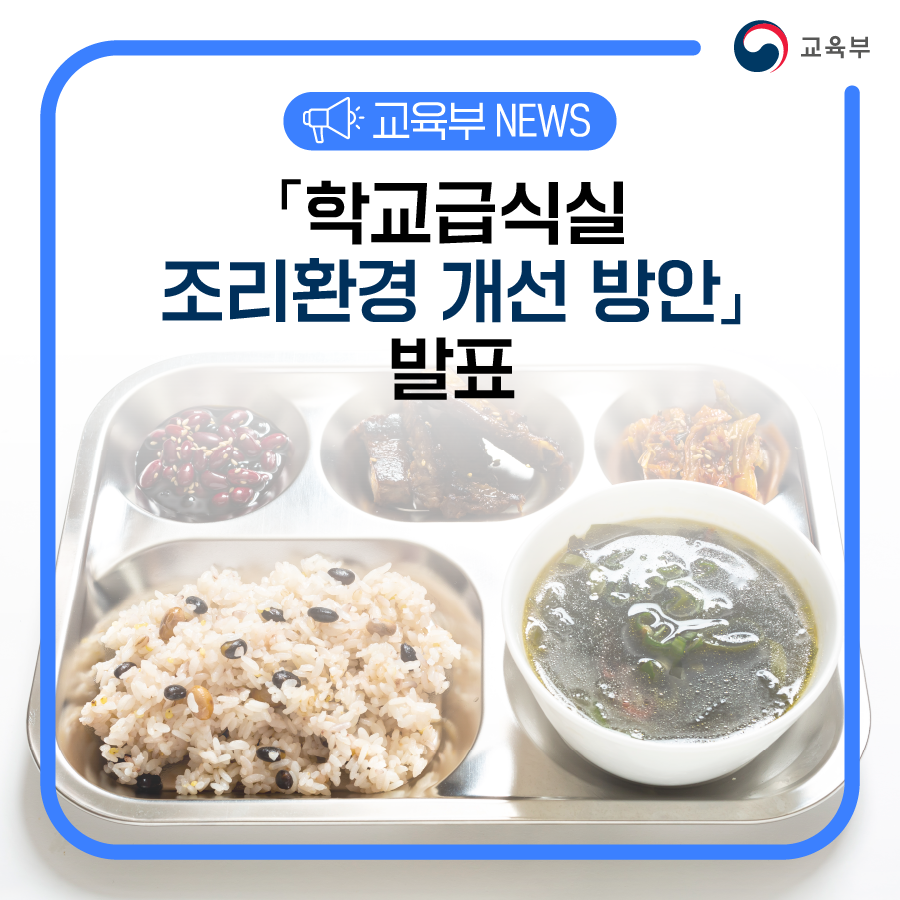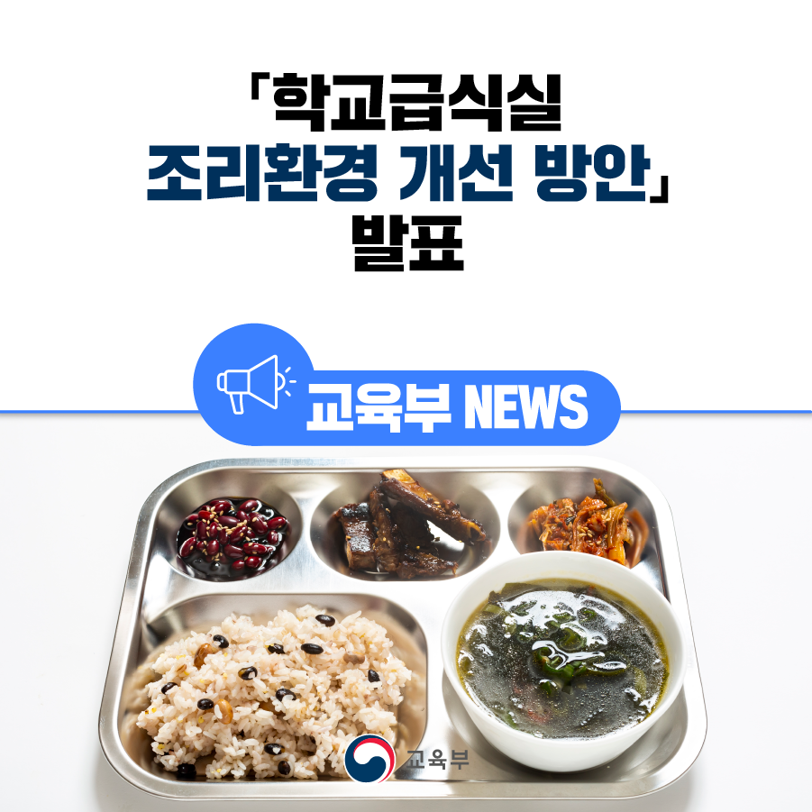교육부(부총리 겸 교육부장관 이주호)는 3.15.(수)에 학교 급식종사자의 건강을 보호하고 안전한 조리실 환경조성을 위해 급식조리실 환기설비 개선, 조리방법 개선 등 급식실 조리환경 개선 방안을 발표하였다.