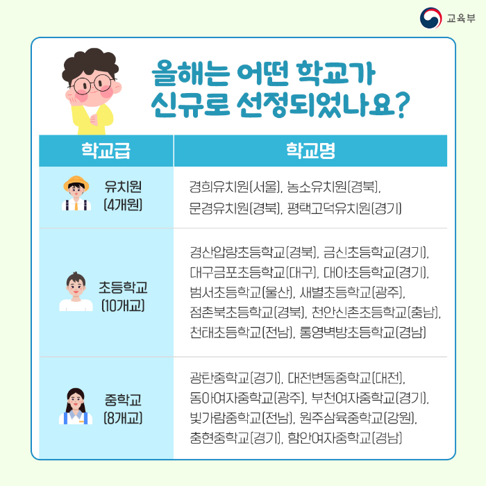 ✔ 올해는 어떤 학교가 새롭게 선정되었나요?