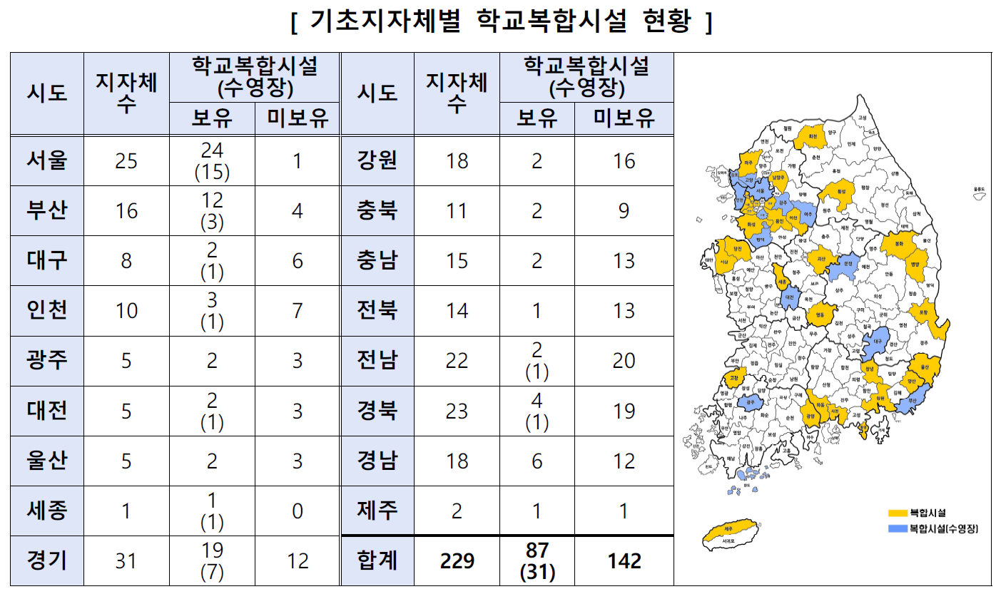 229개 모든 기초지자체 단위에서 학교복합시설이 운영되도록 설치