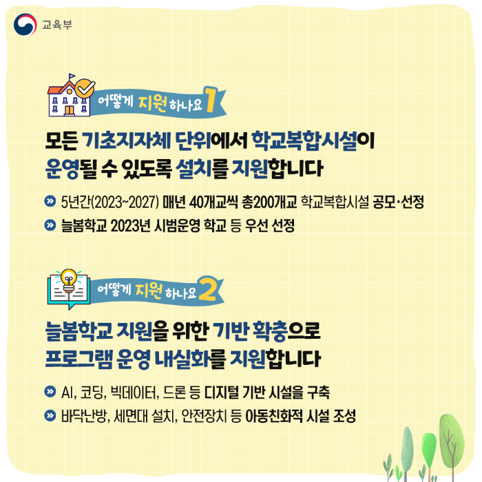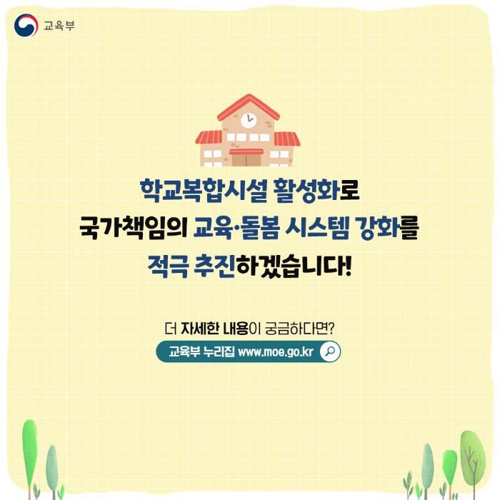 | 국가가 책임지는 교육·돌봄 학교복합시설로 적극 지원합니다 |