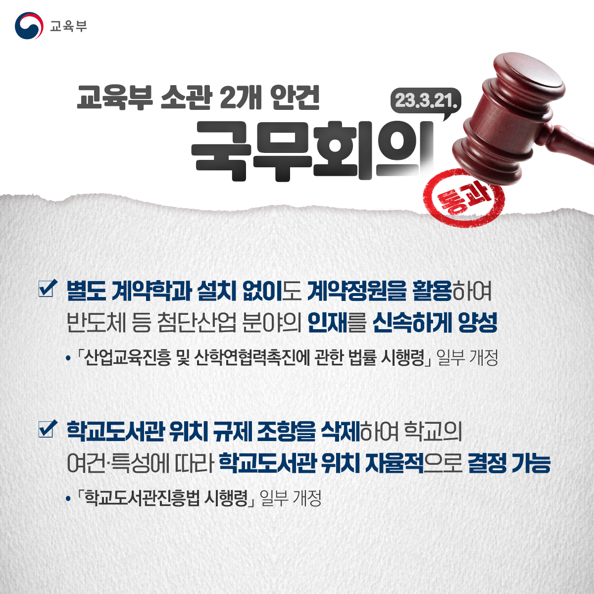 교육부 소관 2개 안건 국무회의 통과 23.3.21.
