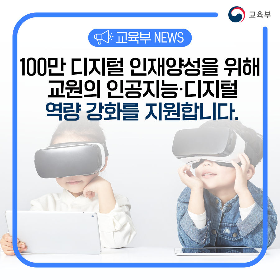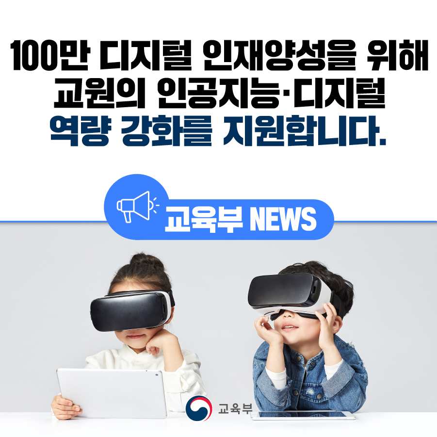 100만 디지털 인재양성을 위해 교원의 인공지능·디지털 역량 강화를 지원합니다. 본문