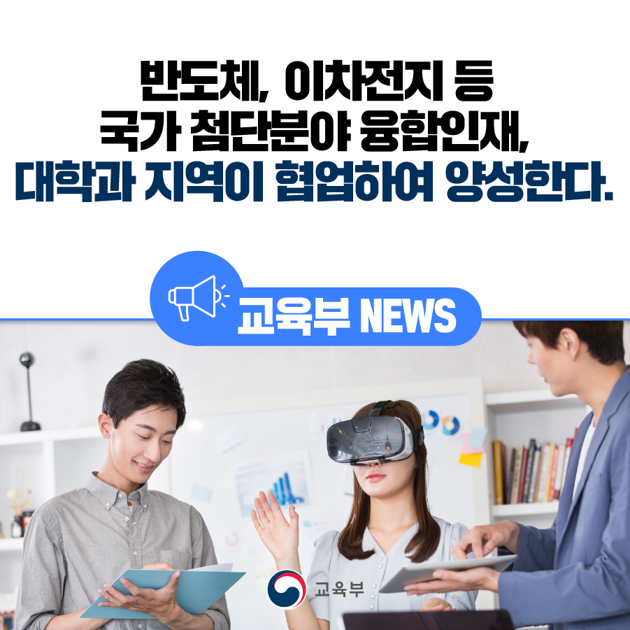 반도체, 이차전지 등 국가 첨단분야 융합인재, 대학과 지역이 협업하여 양성한다. 본문