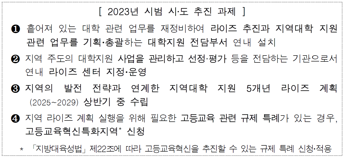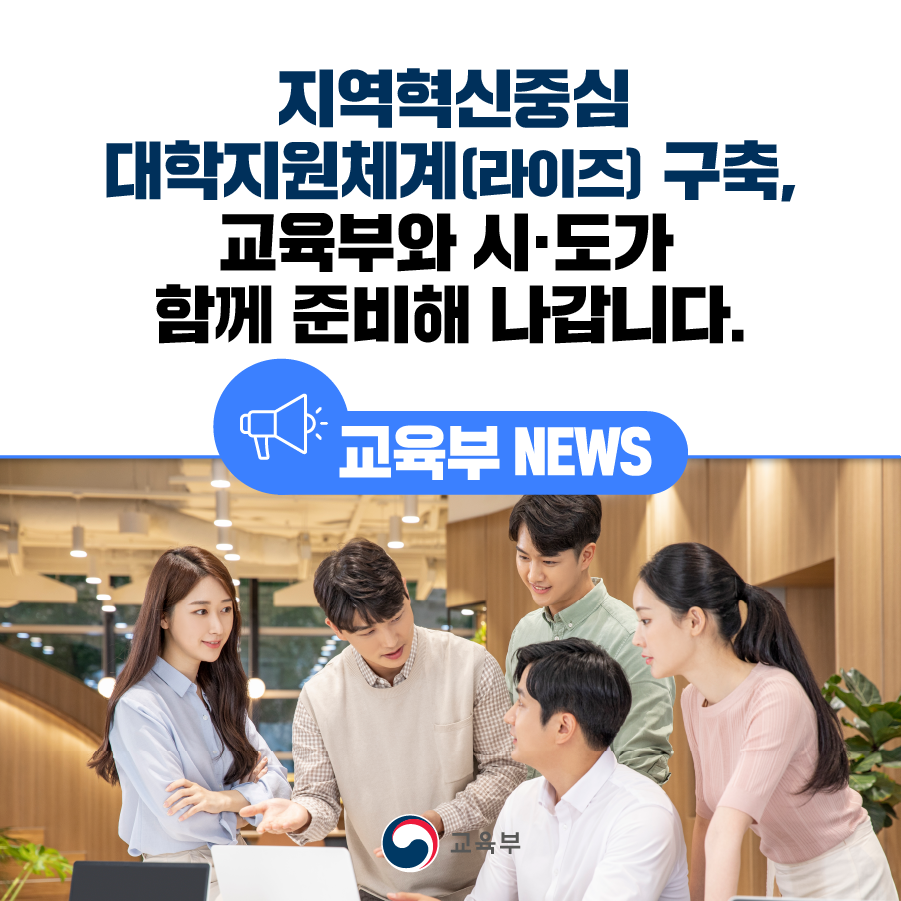 지역혁신중심 대학지원체계(라이즈) 구축, 교육부와 시‧도가 함께 준비해 나갑니다. 본문
