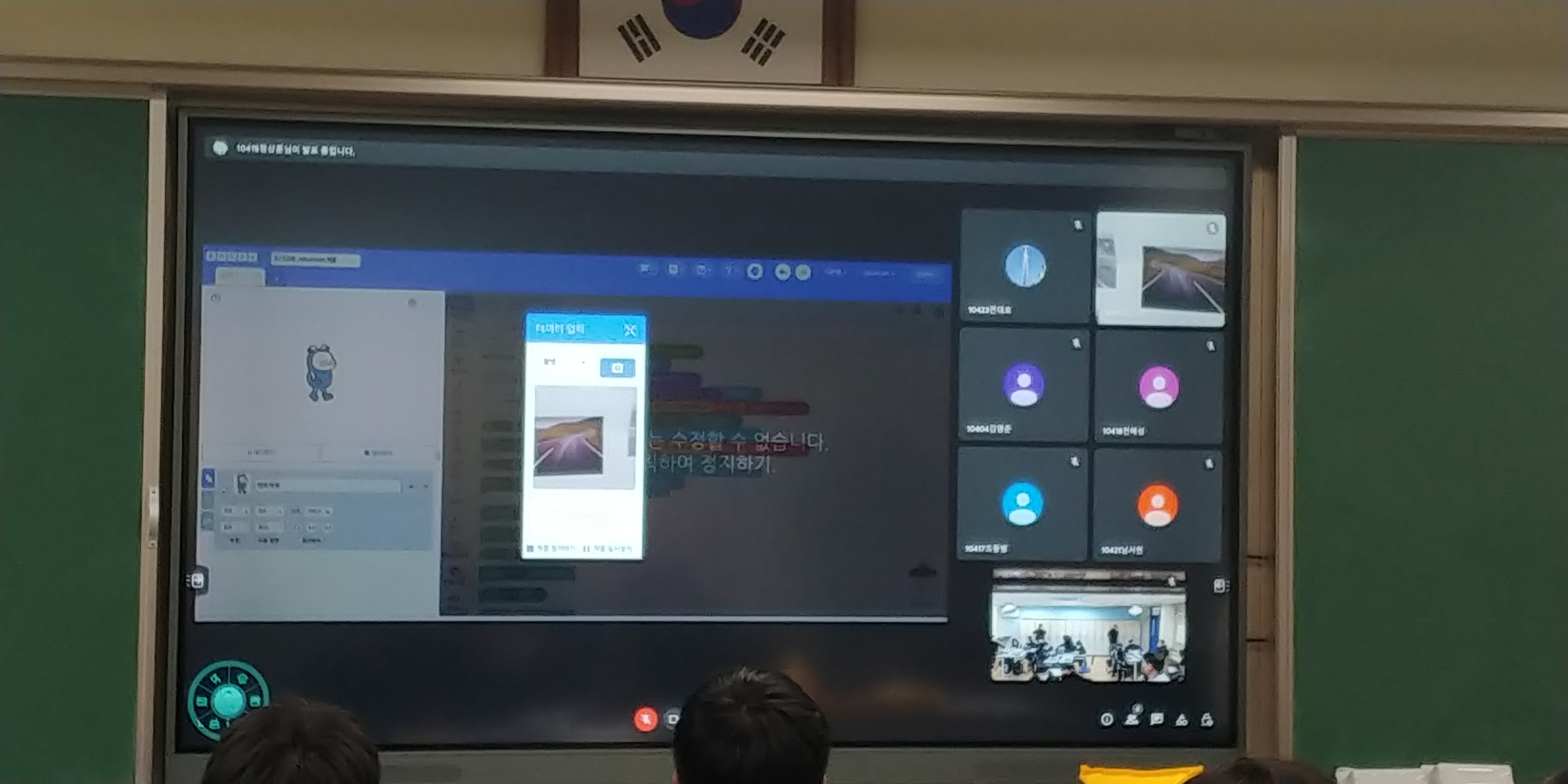 모둠별로 학생들이 프로그램 전체 과정을 만들어볼 수 있도록 하고 수업 마무리 단계에서는 모둠별로 만들어낸 프로그램을 디벗(노트북)과 교실의 전자칠판을 연결하여, 프로그램 실행 과정을 모든 학생이 볼 수 있도록 시연 및 설명하는 시간을 갖습니다.